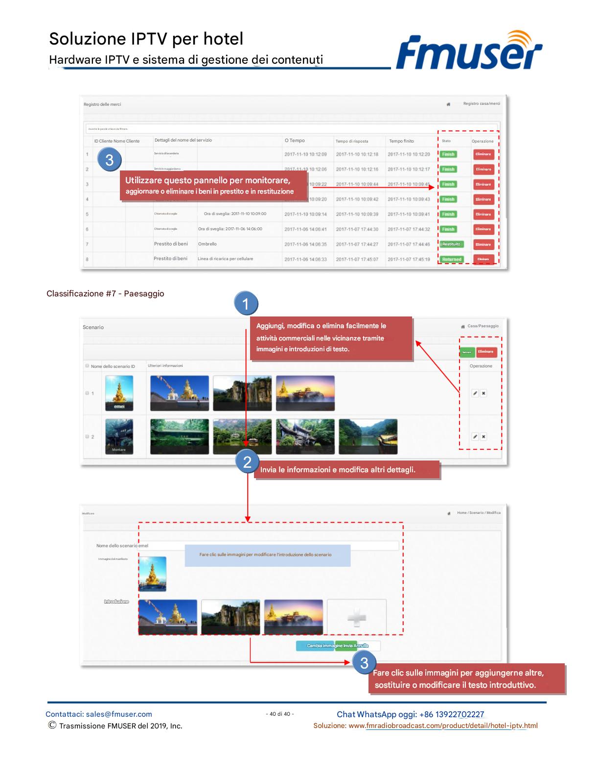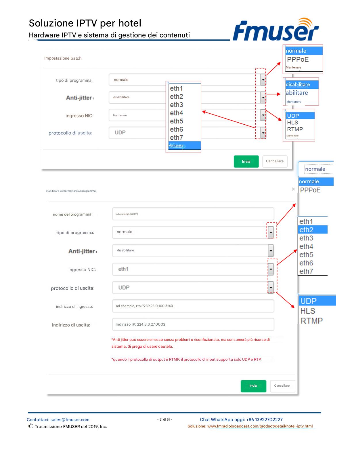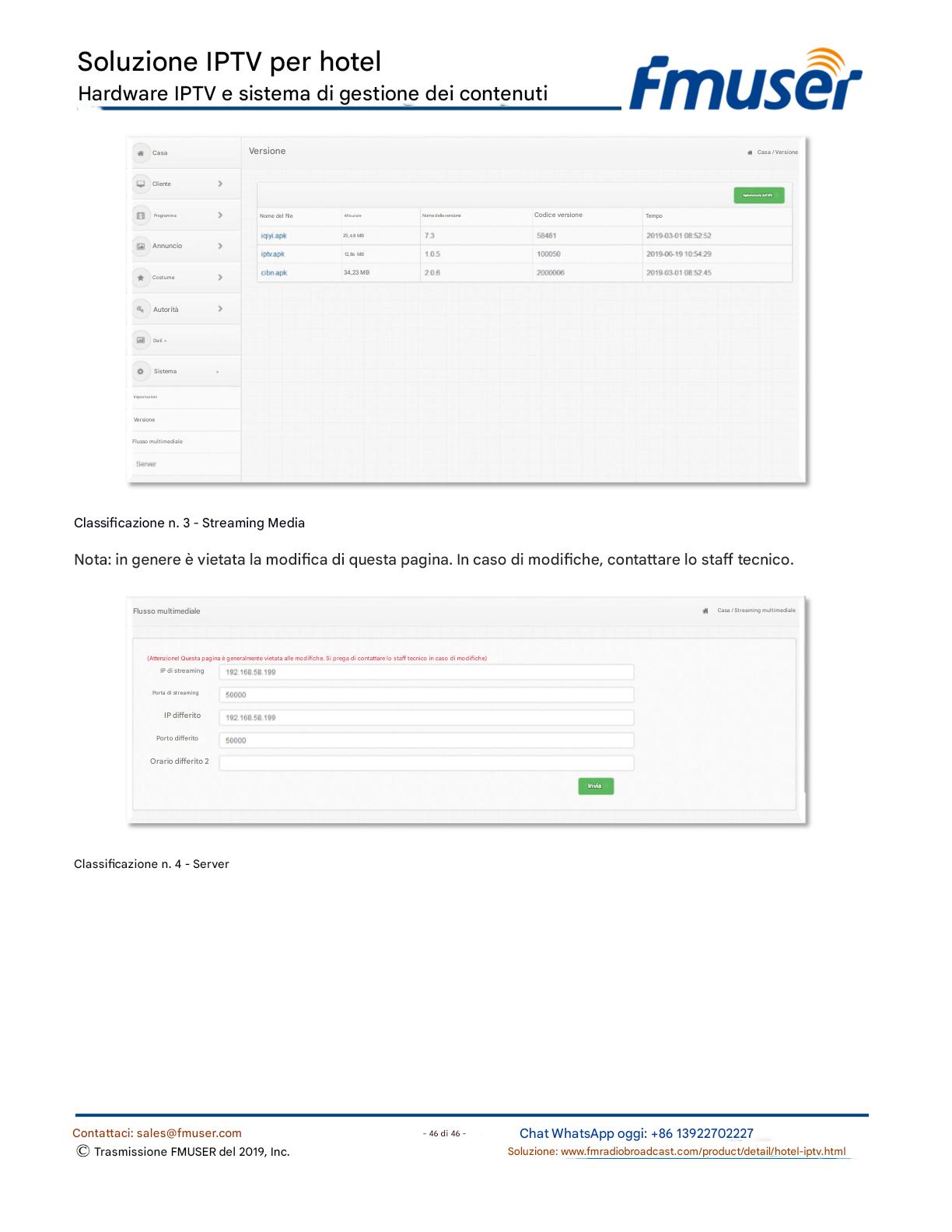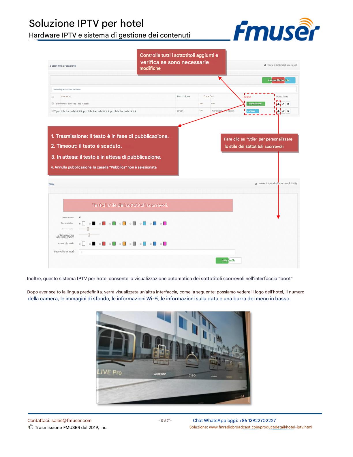 FMUSER offre una soluzione IPTV completa per gli ingegneri alberghieri, con IRD di livello broadcast, codificatori hardware, gateway IPTV e decoder commerciali. Progettata per gli integratori di sistema, questa architettura scalabile supporta lo streaming HD/4K, la gestione centralizzata e l'integrazione senza soluzione di continuità con i sistemi PMS/CAS degli hotel. Esplora soluzioni di distribuzione video di livello professionale.