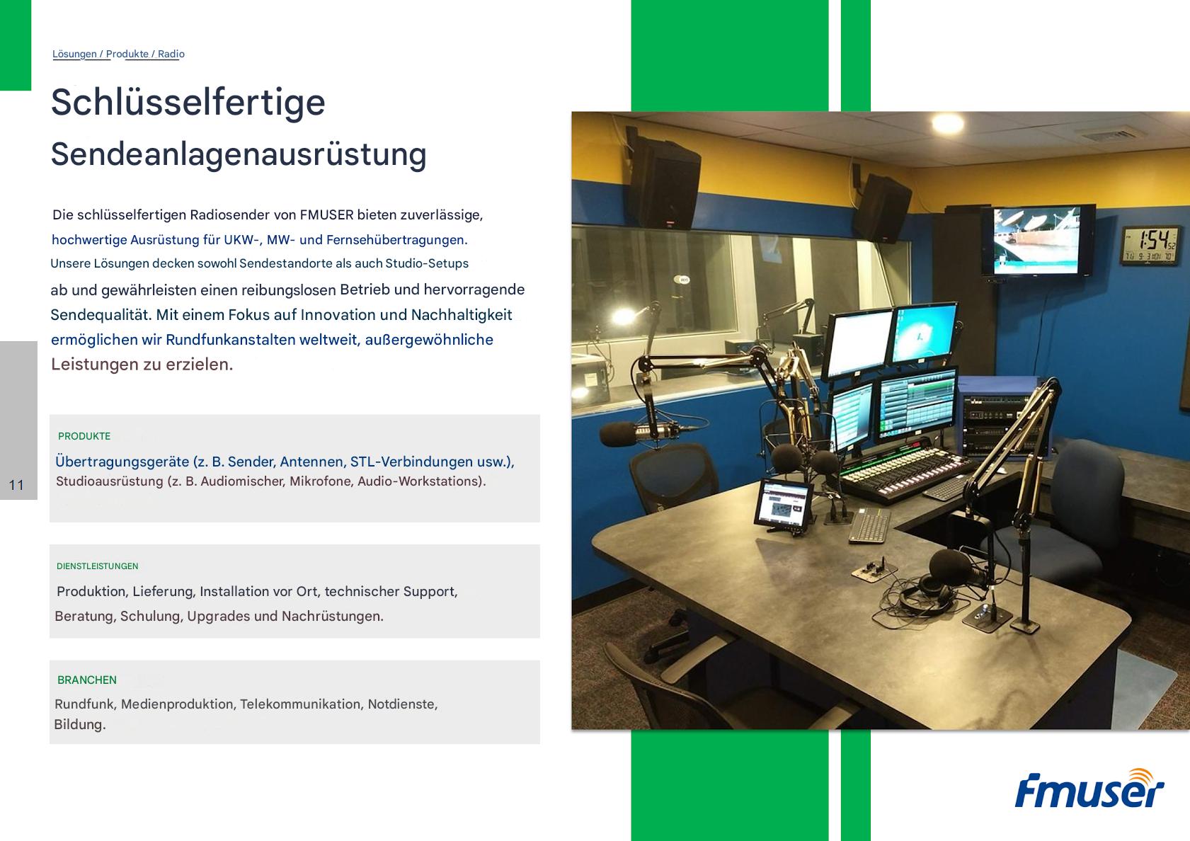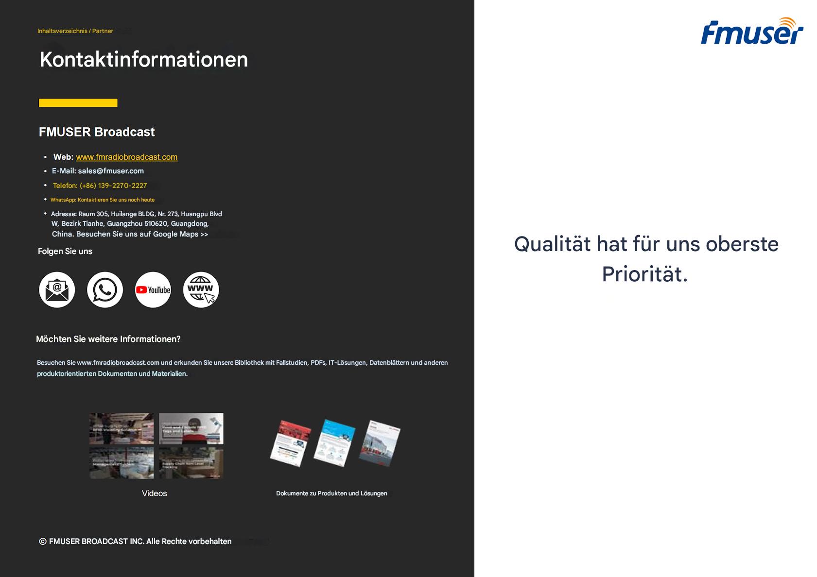 Die FMUSER INTERNATIONAL GROUP LIMITED ist spezialisiert auf innovative audiovisuelle und Telekommunikationslösungen für globale Ingenieure und Systemintegratoren. Mit Sitz in Guangzhou liefern wir maßgeschneiderte, skalierbare Systeme für Rundfunk-, Unternehmens- und Industrieanwendungen. Unsere Expertise umfasst Echtzeit-Streaming, Signalverteilung und unternehmenskritische Kommunikationsinfrastrukturen.
