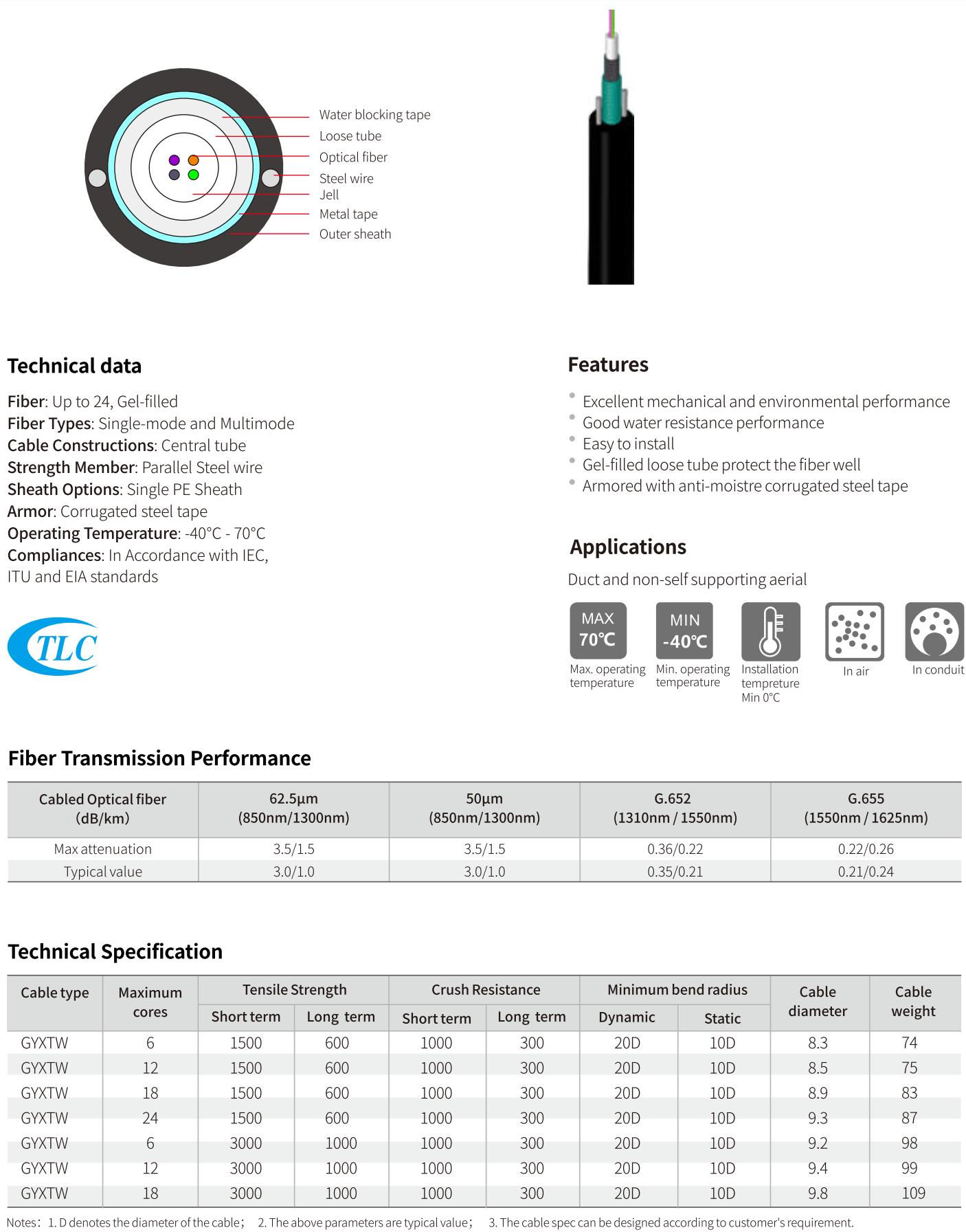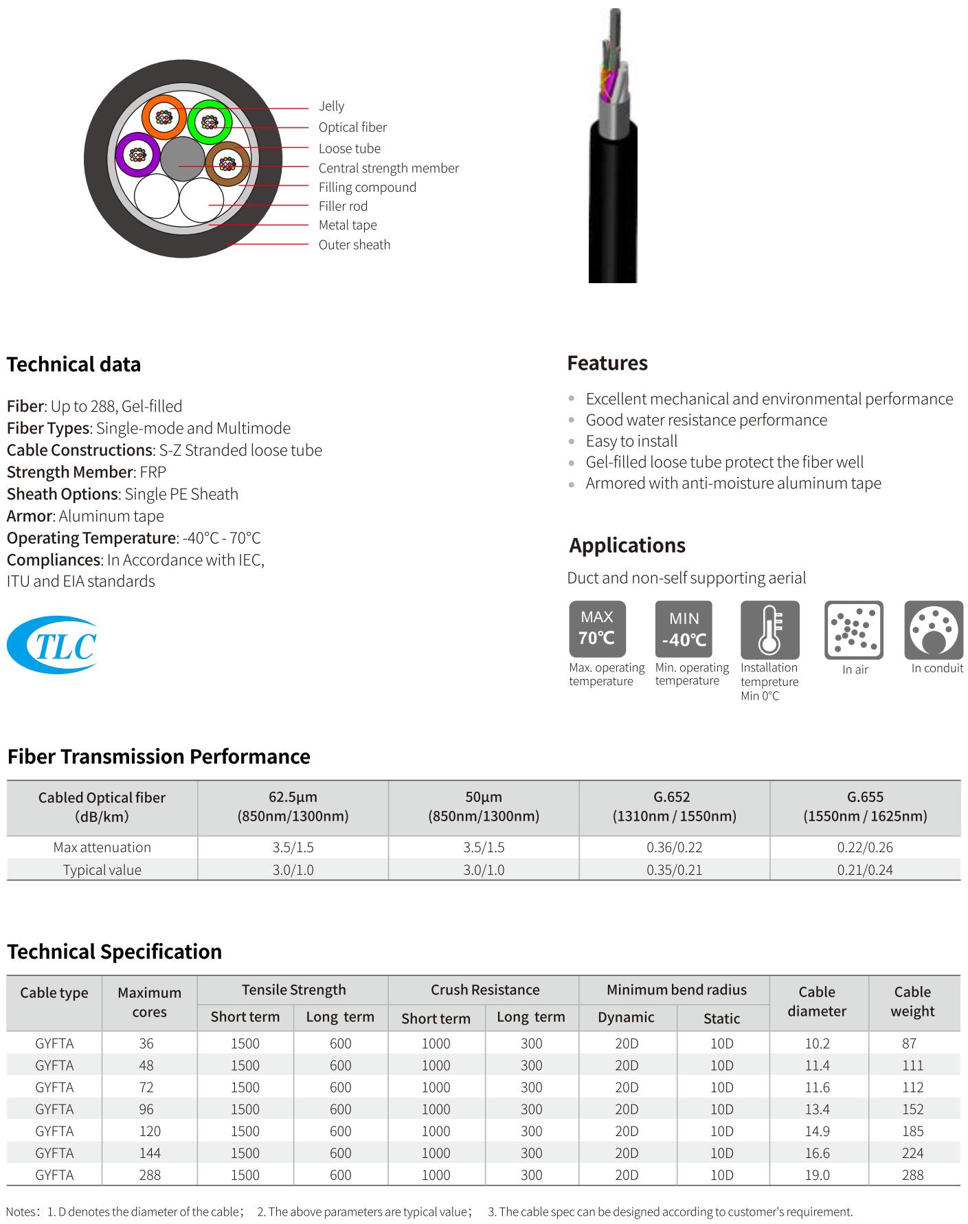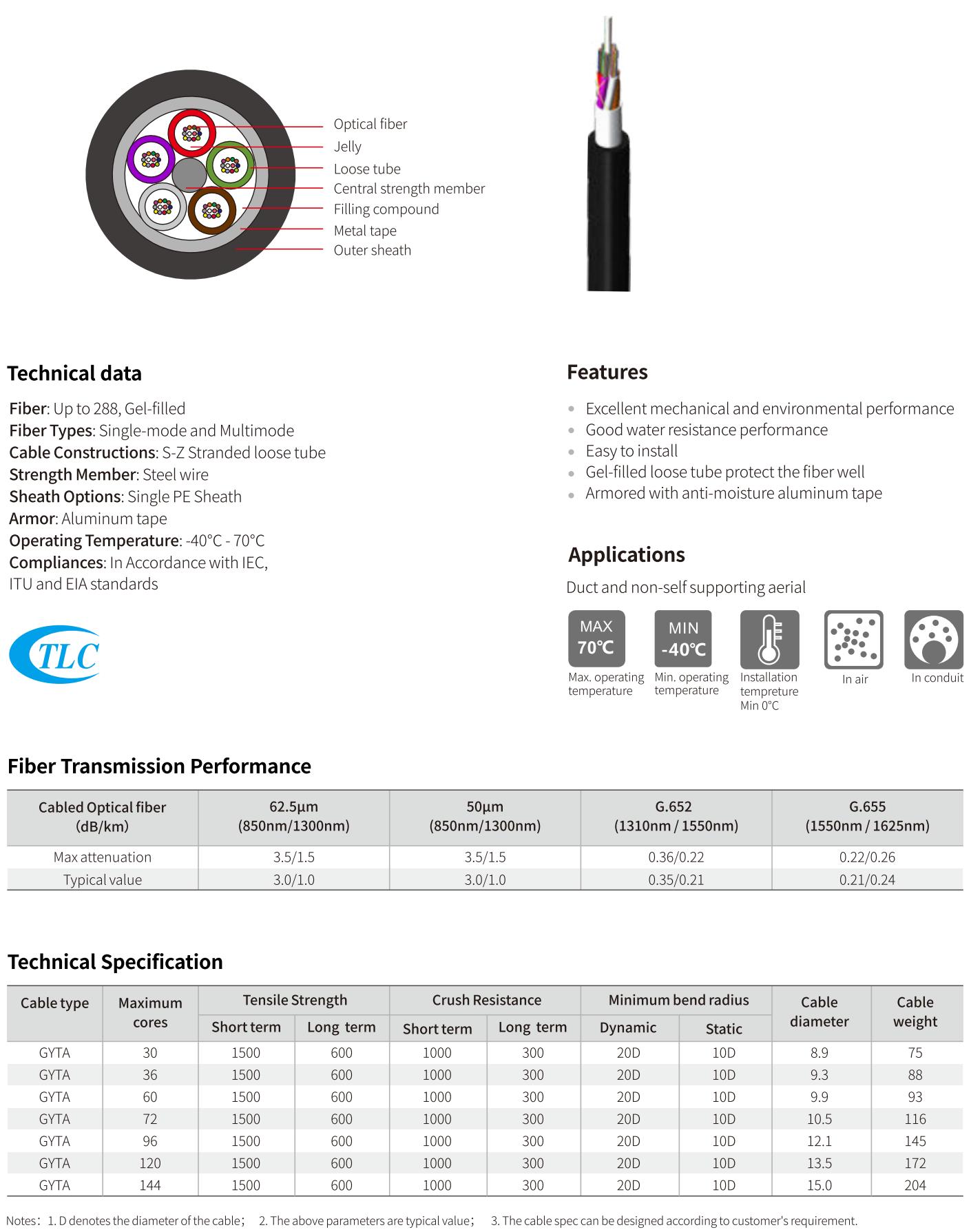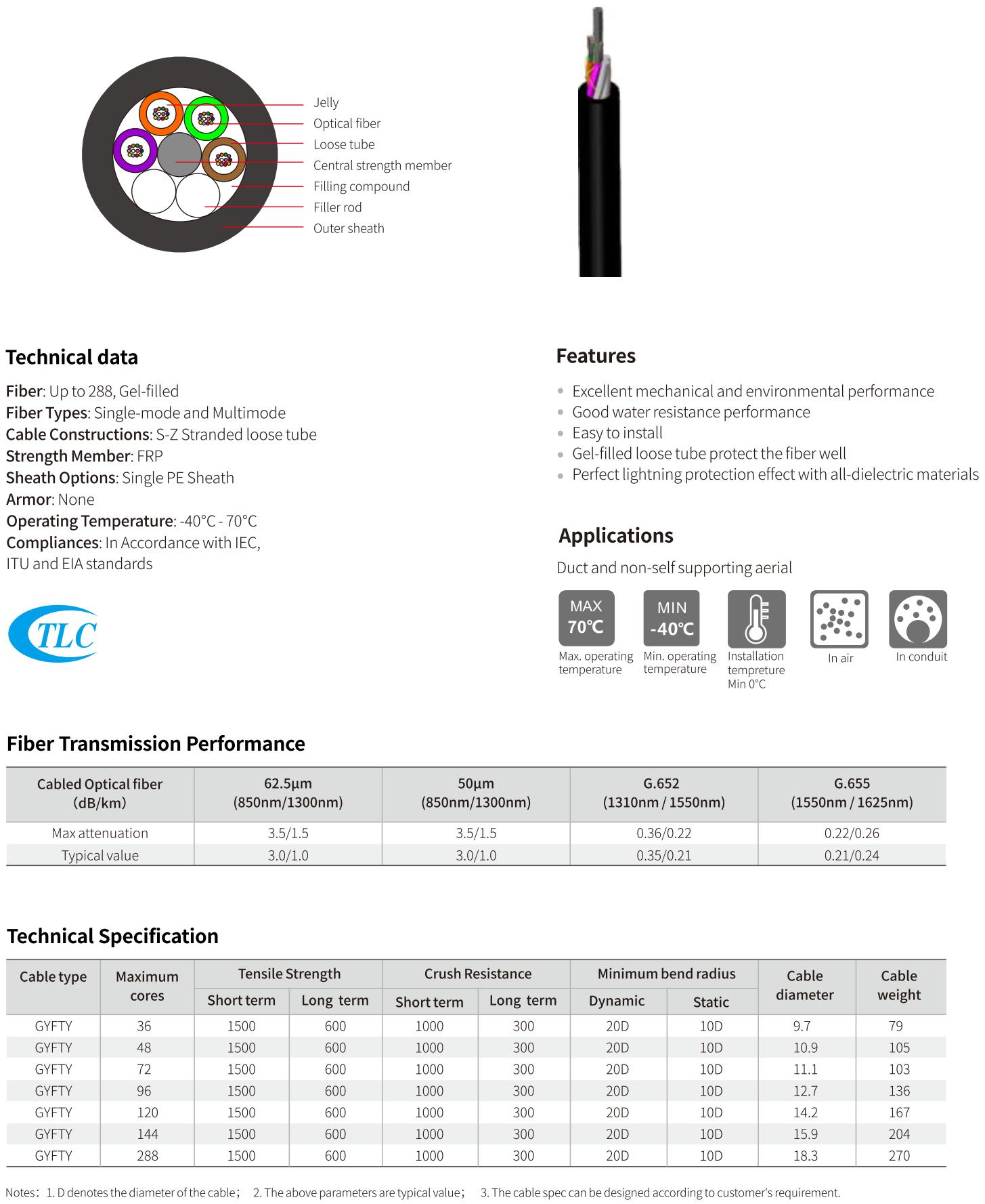 For direct burial applications, our GYTY53, GYTA53, GYFTY53, and GYFTA53 cables provide durable and reliable connections, with the ability to withstand challenging burial environments.