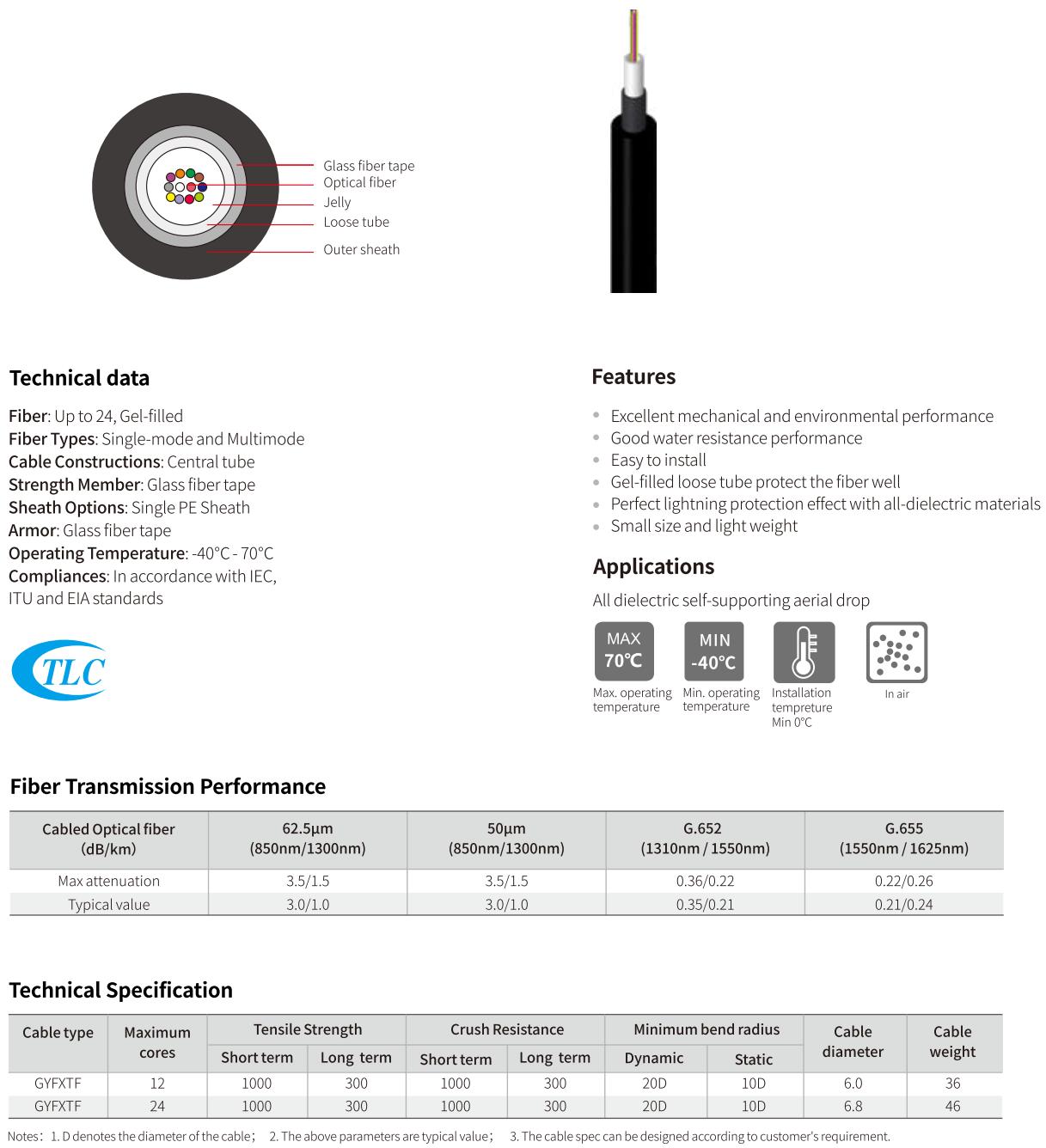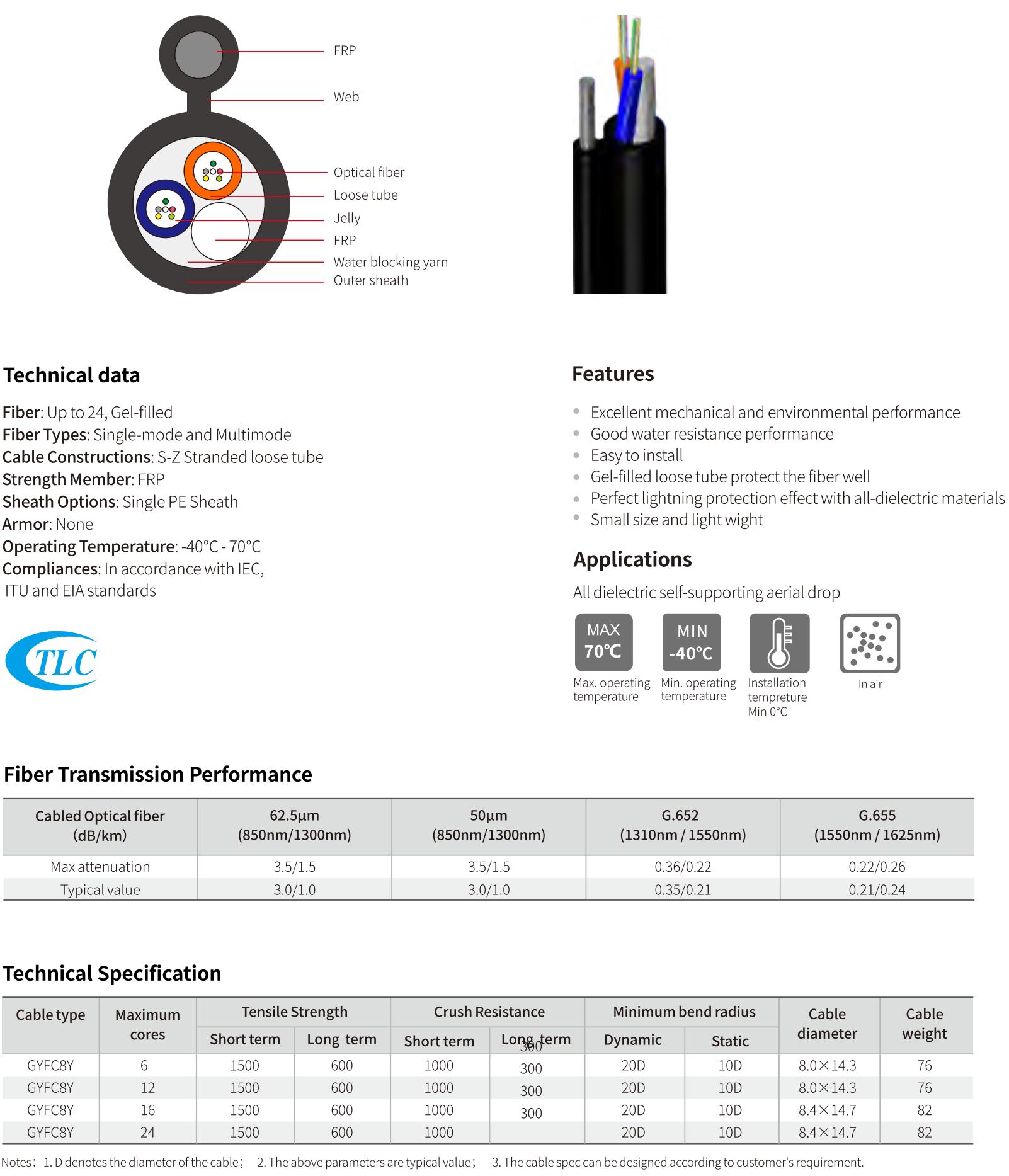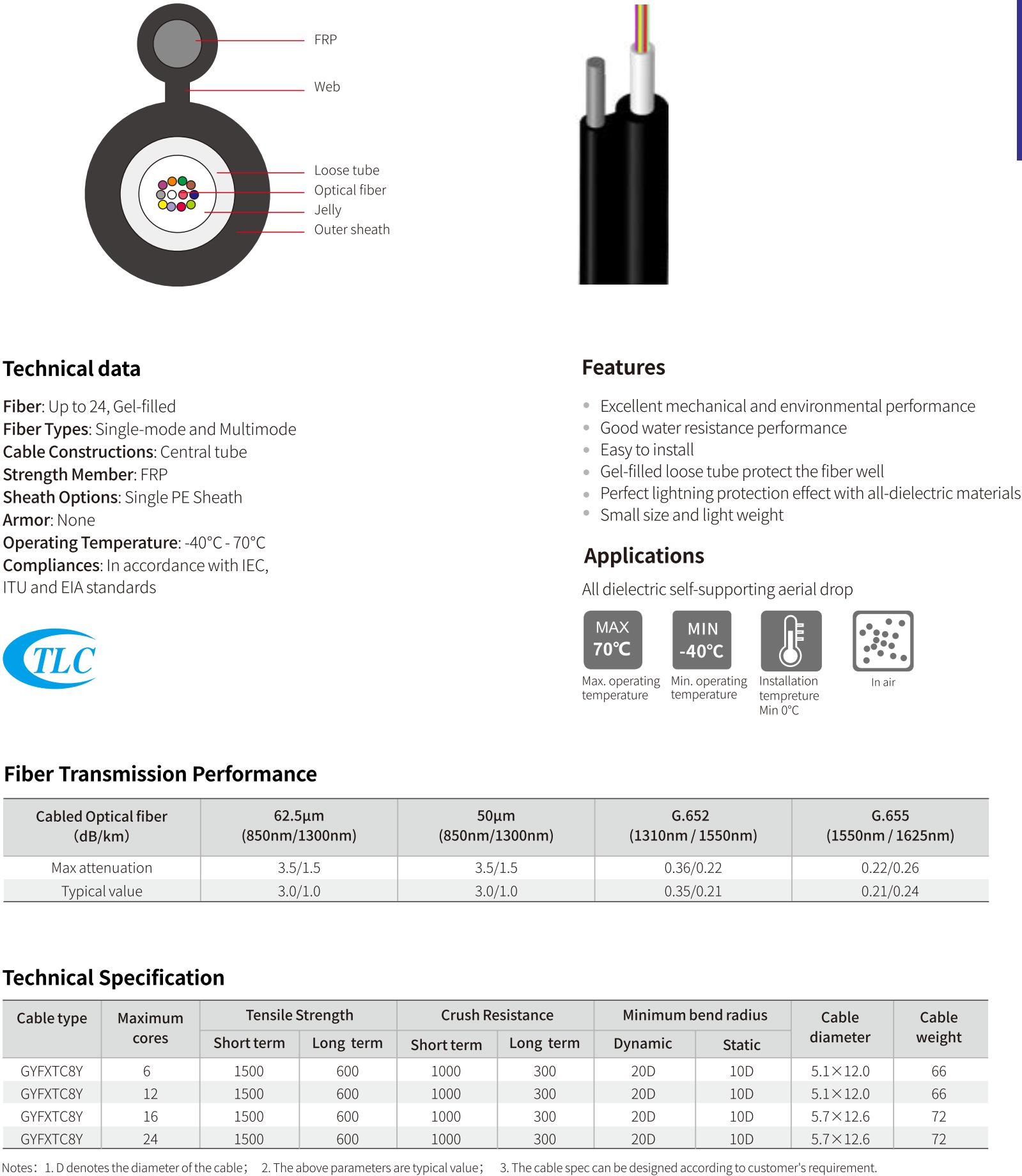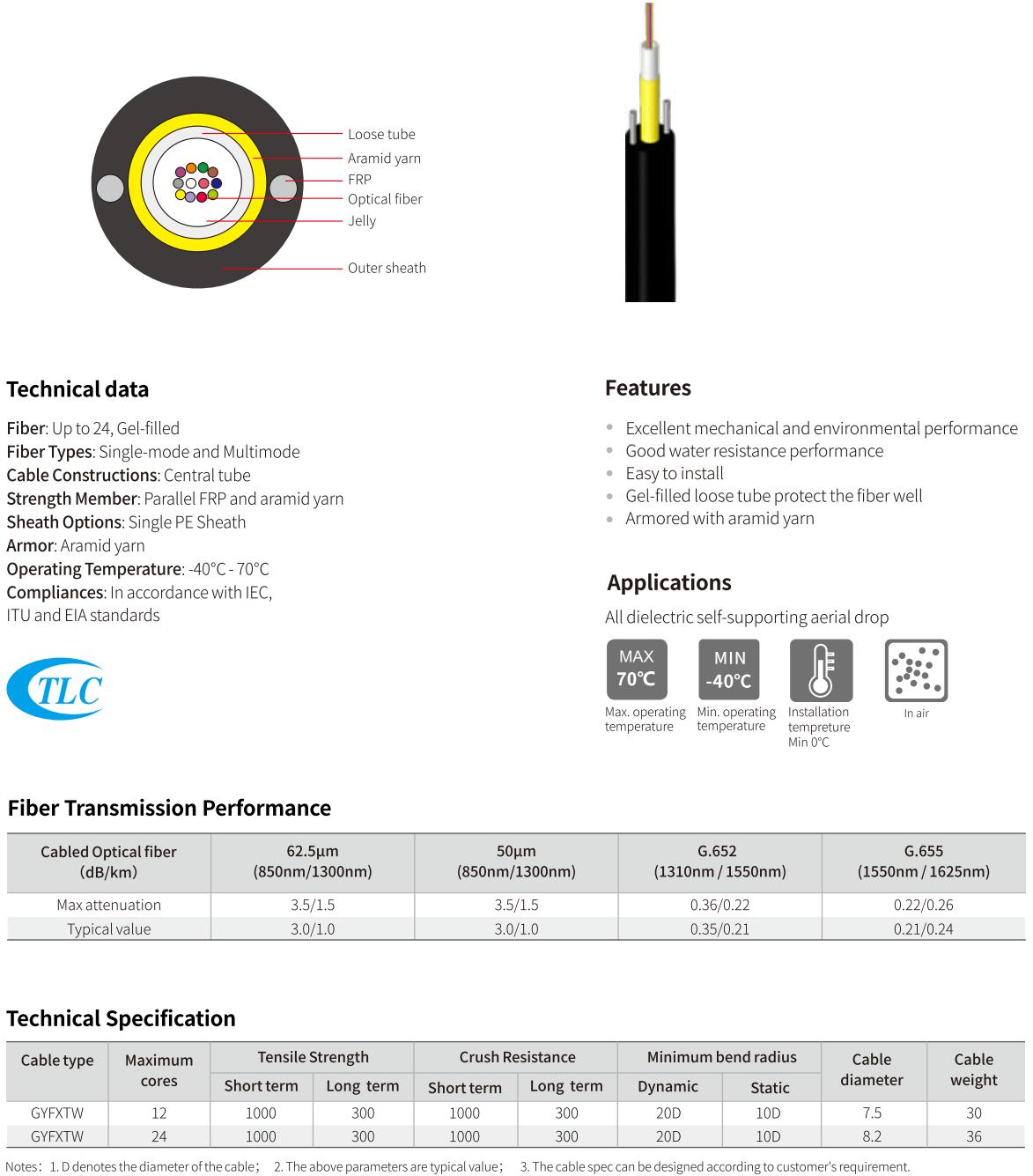 FMUSER's all dielectric self-supporting drop cables series, GYFC8Y, GYFXTC8Y, GYFXTF, and GYFXTW are specifically designed for easy and secure installation. These cables provide reliable and flexible fiber optic connectivity for drop applications, ensuring efficient data transmission with minimal installation complexity.