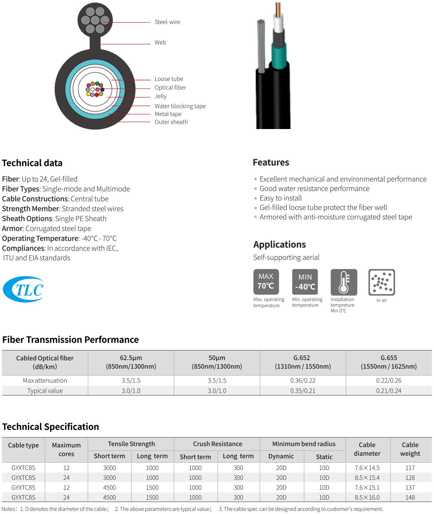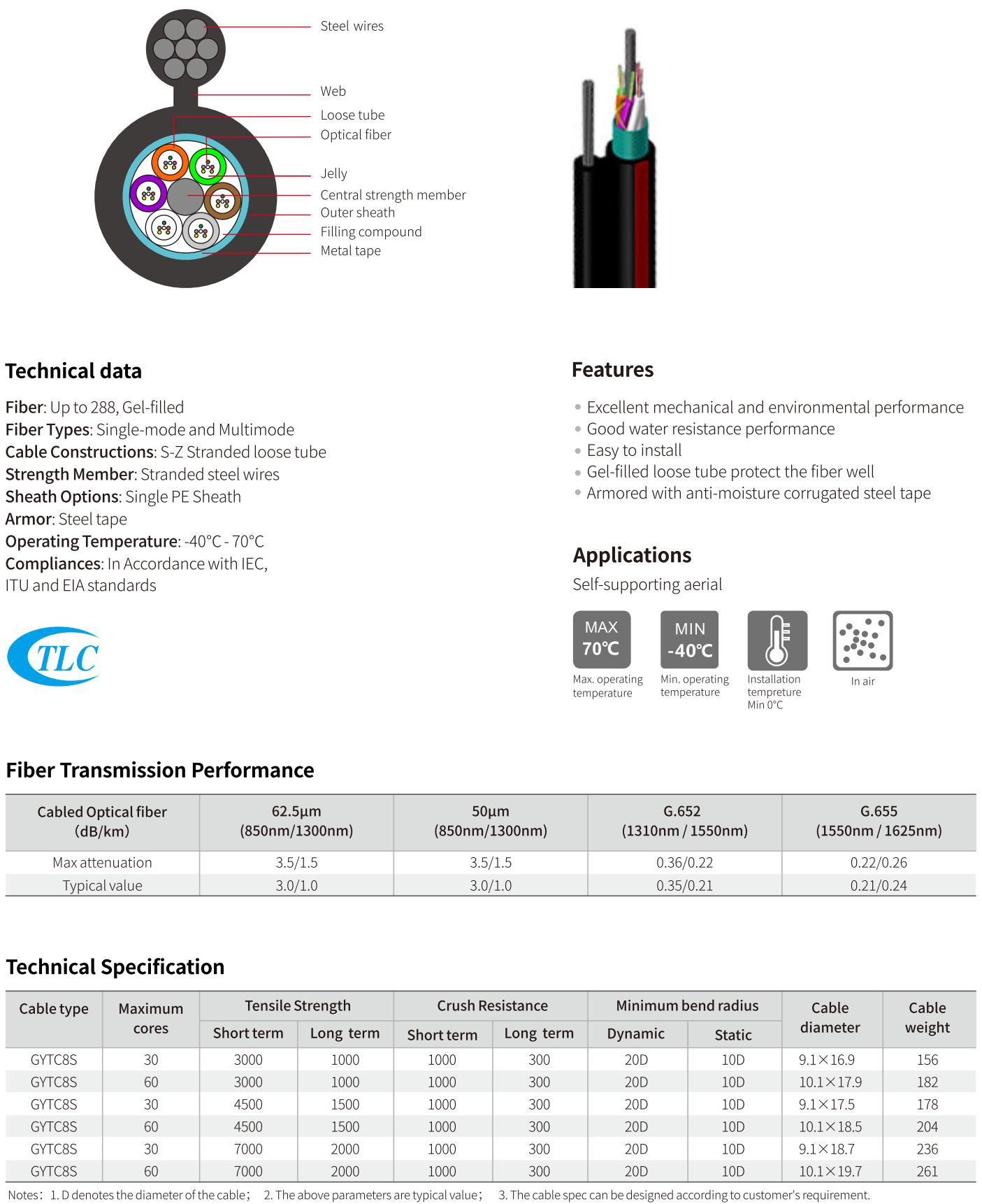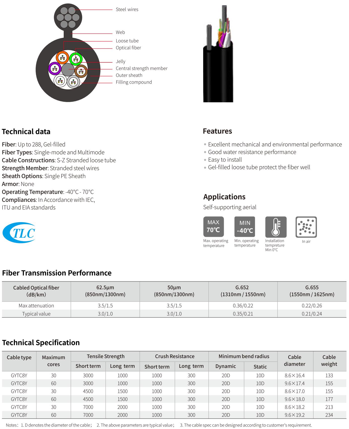 For self-supporting aerial applications, our GYTC8Y, GYTC8A, GYTC8S, and GYXTC8S cables offer a robust and reliable solution, featuring a figure 8 configuration that enables secure installation in various environments.