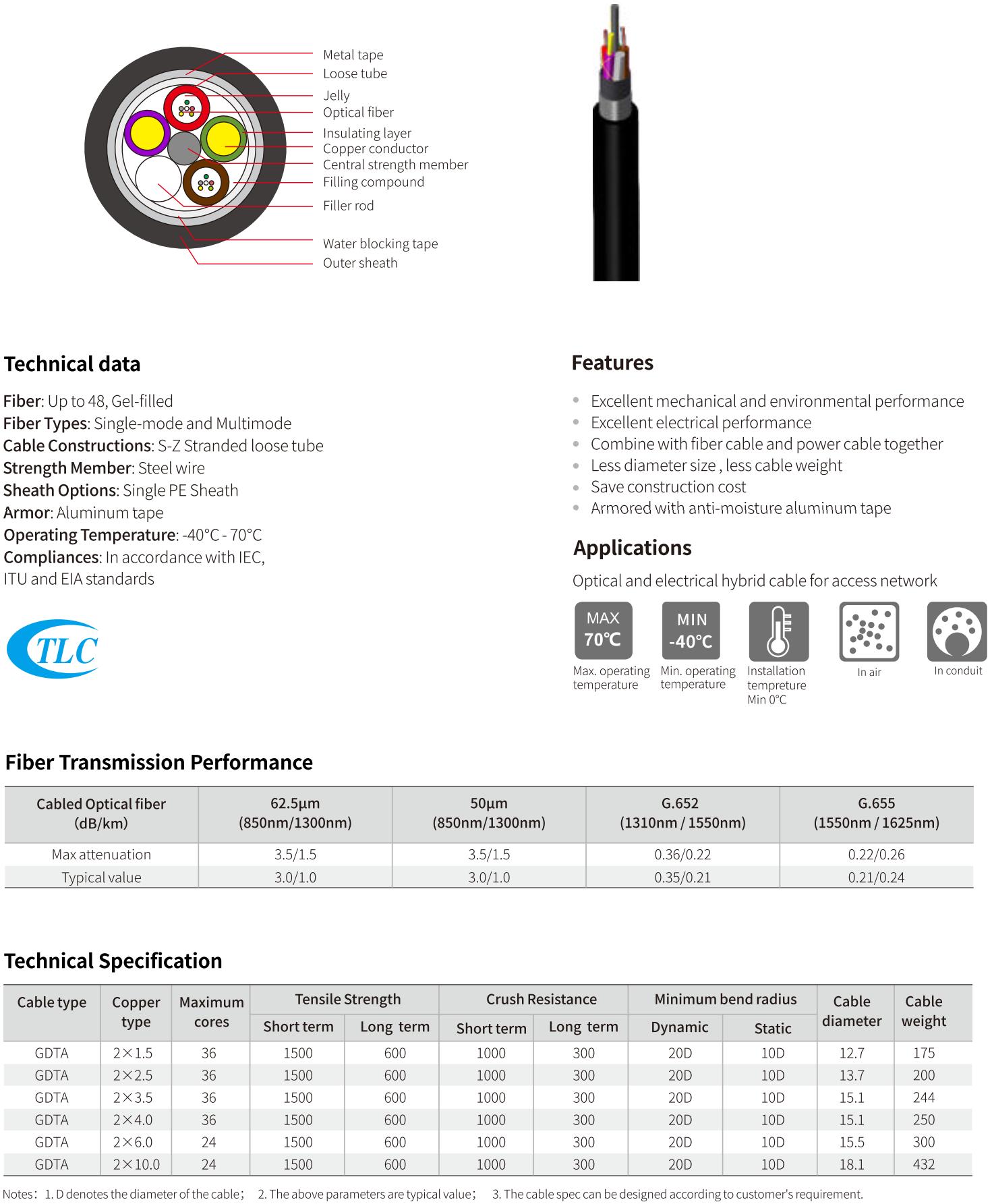 FMUSER's optical and electrical hybrid cables GDTA, GDTS, and GDFTA are designed for access network installations. These cables provide a combination of optical and electrical transmission capabilities, enabling efficient and reliable connectivity for access network applications.
