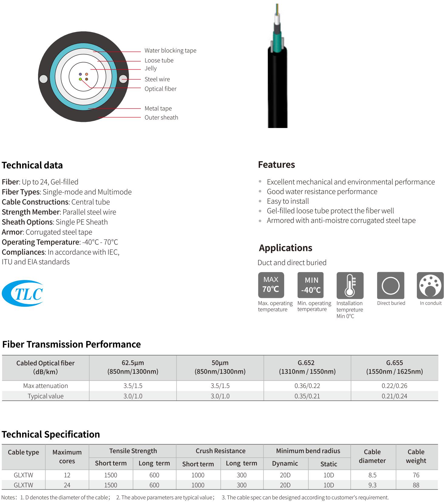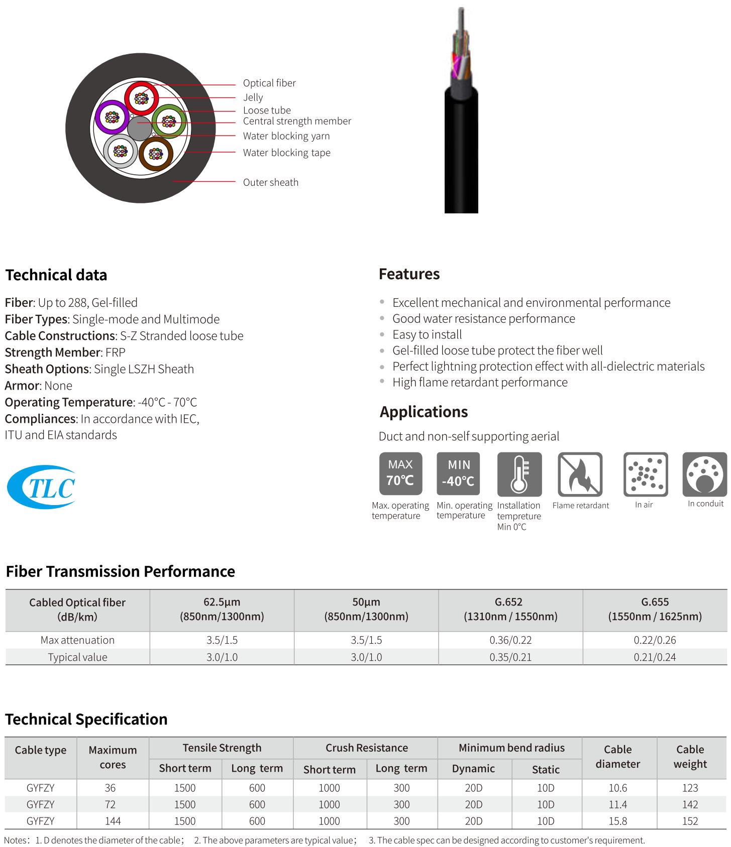 For direct burial applications, our GYTY53, GYTA53, GYFTY53, and GYFTA53 cables provide durable and reliable connections, with the ability to withstand challenging burial environments.