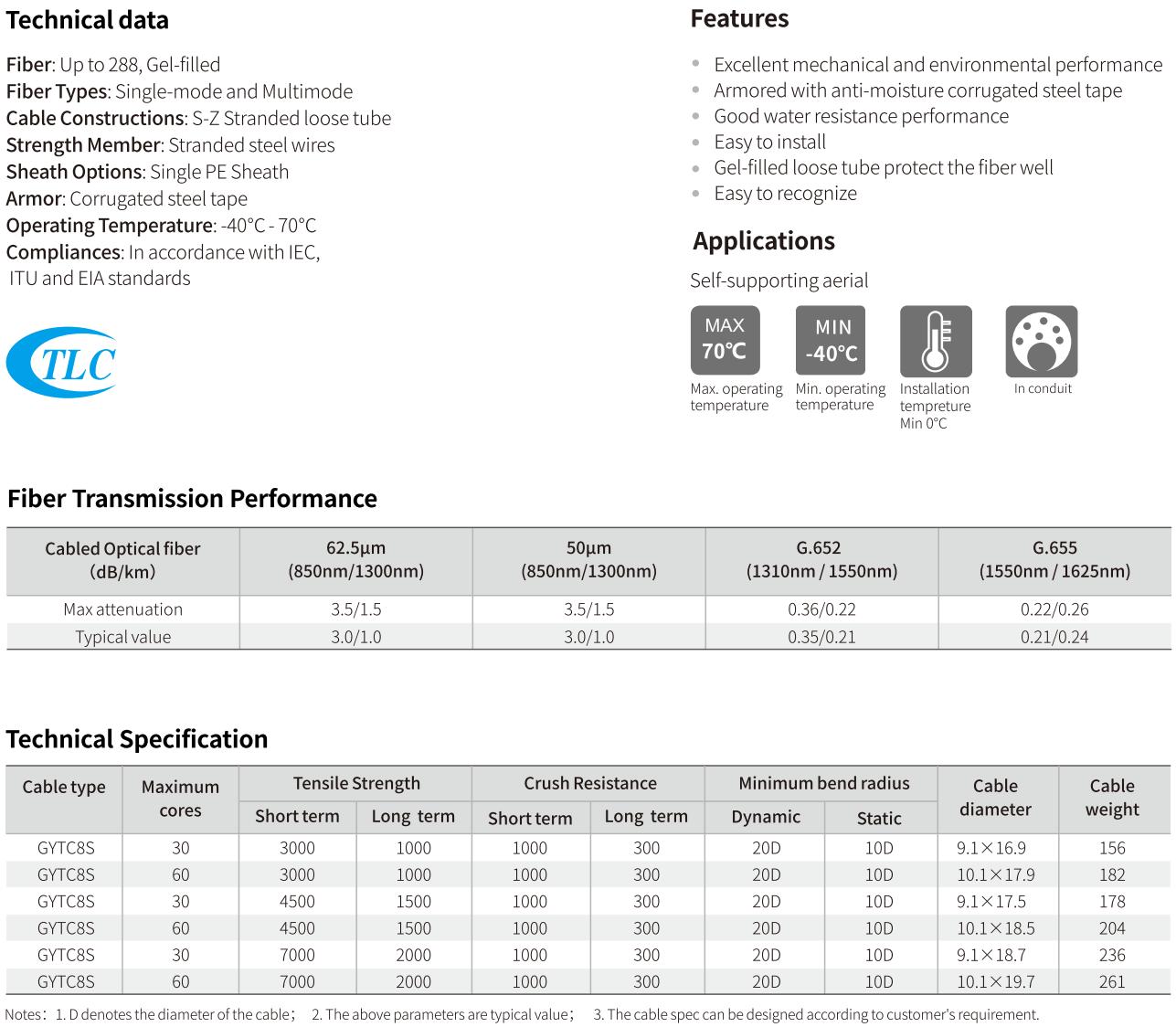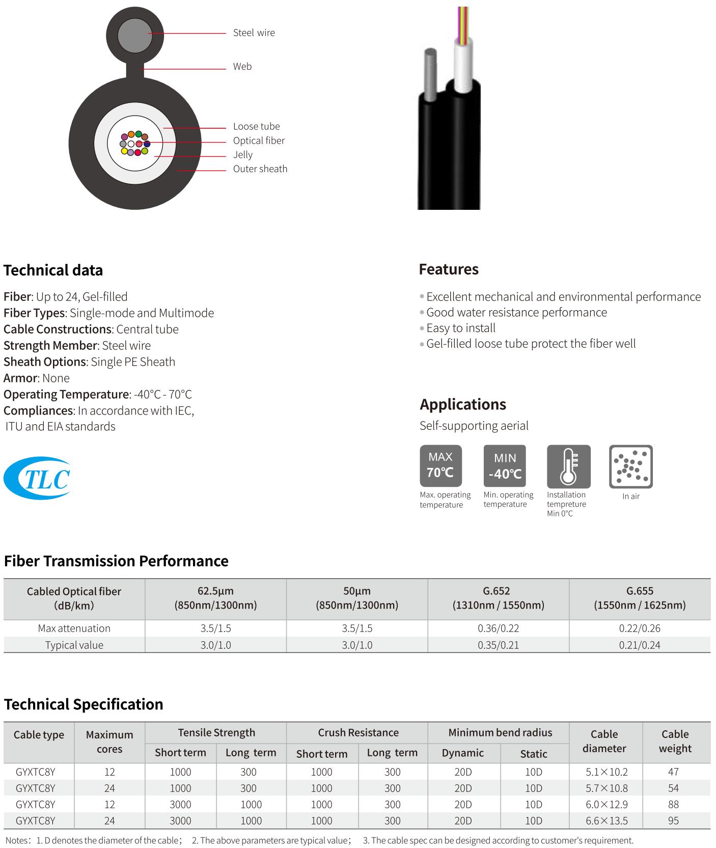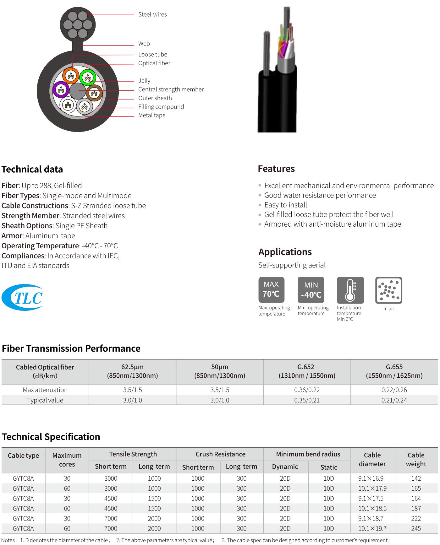 For self-supporting aerial applications, our GYTC8Y, GYTC8A, GYTC8S, and GYXTC8S cables offer a robust and reliable solution, featuring a figure 8 configuration that enables secure installation in various environments.