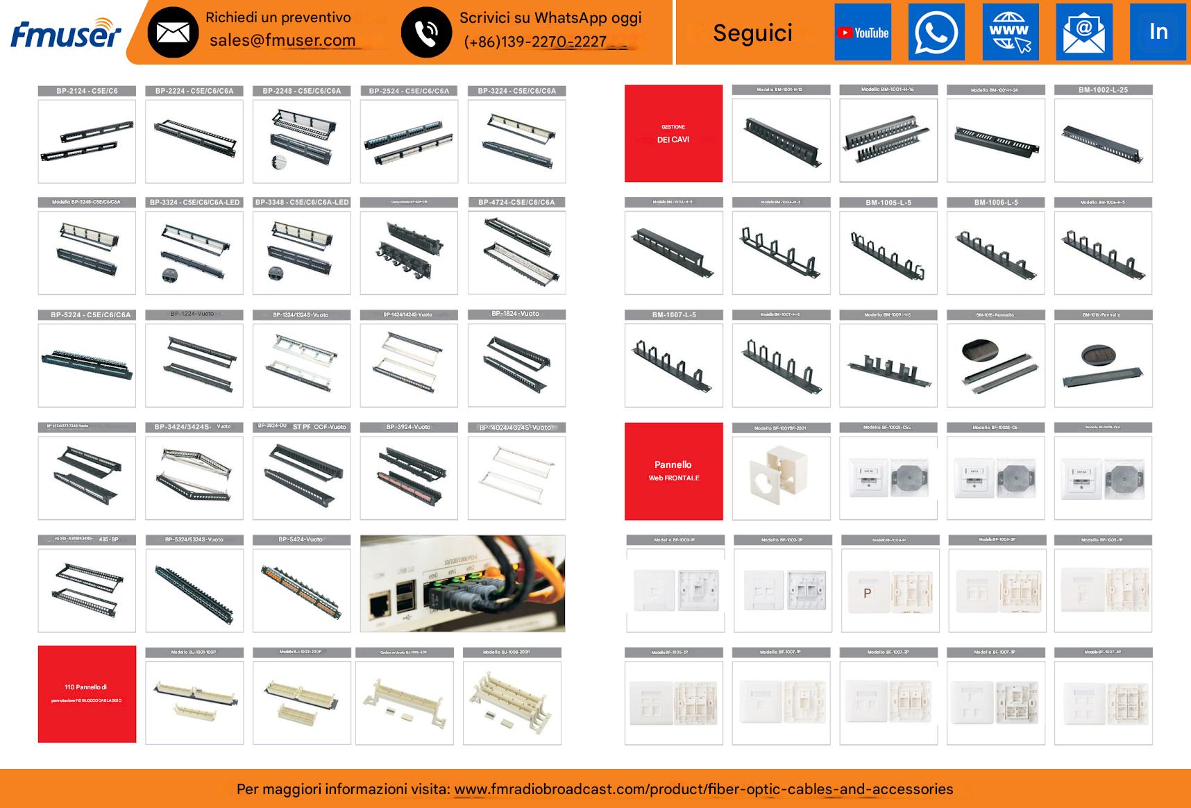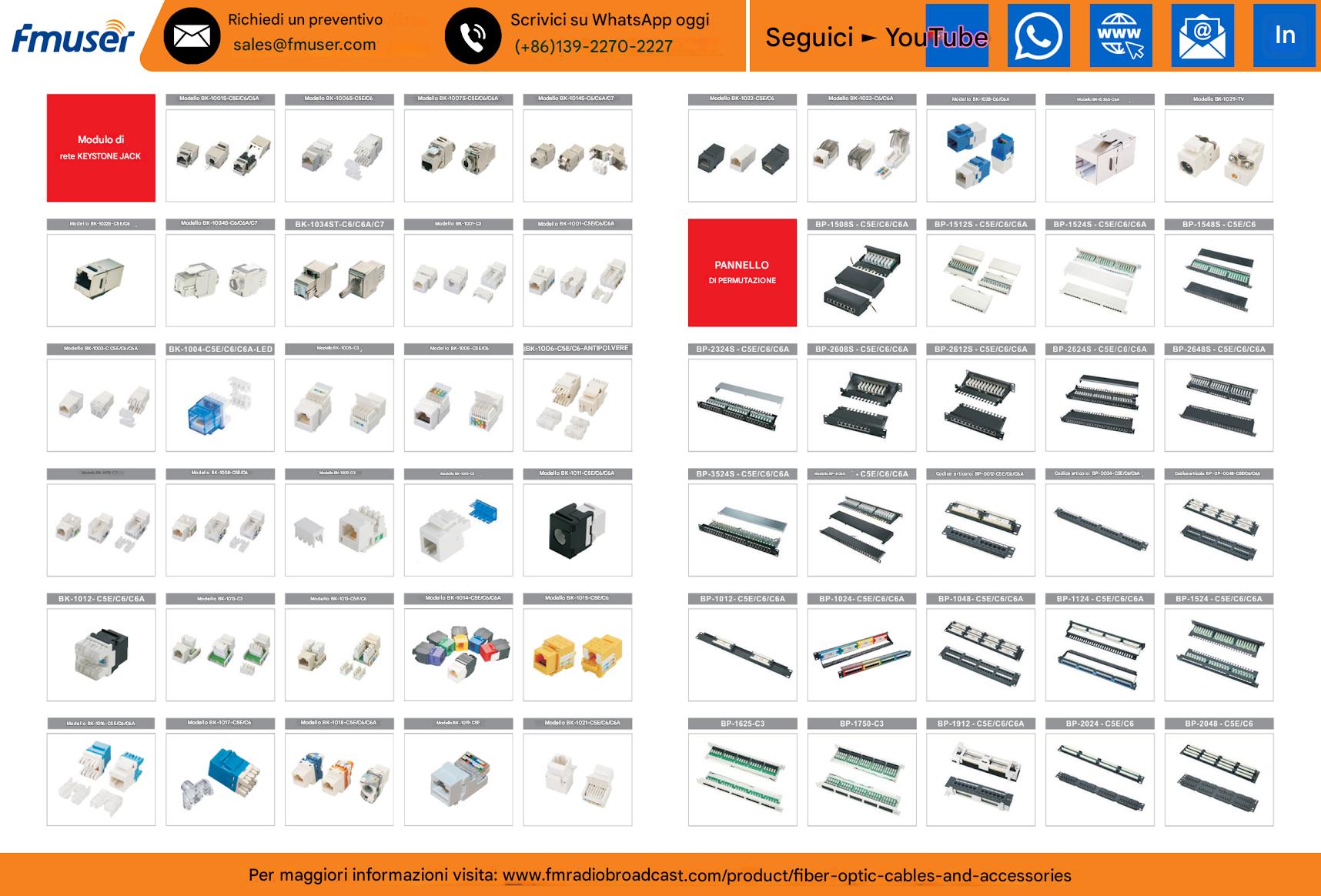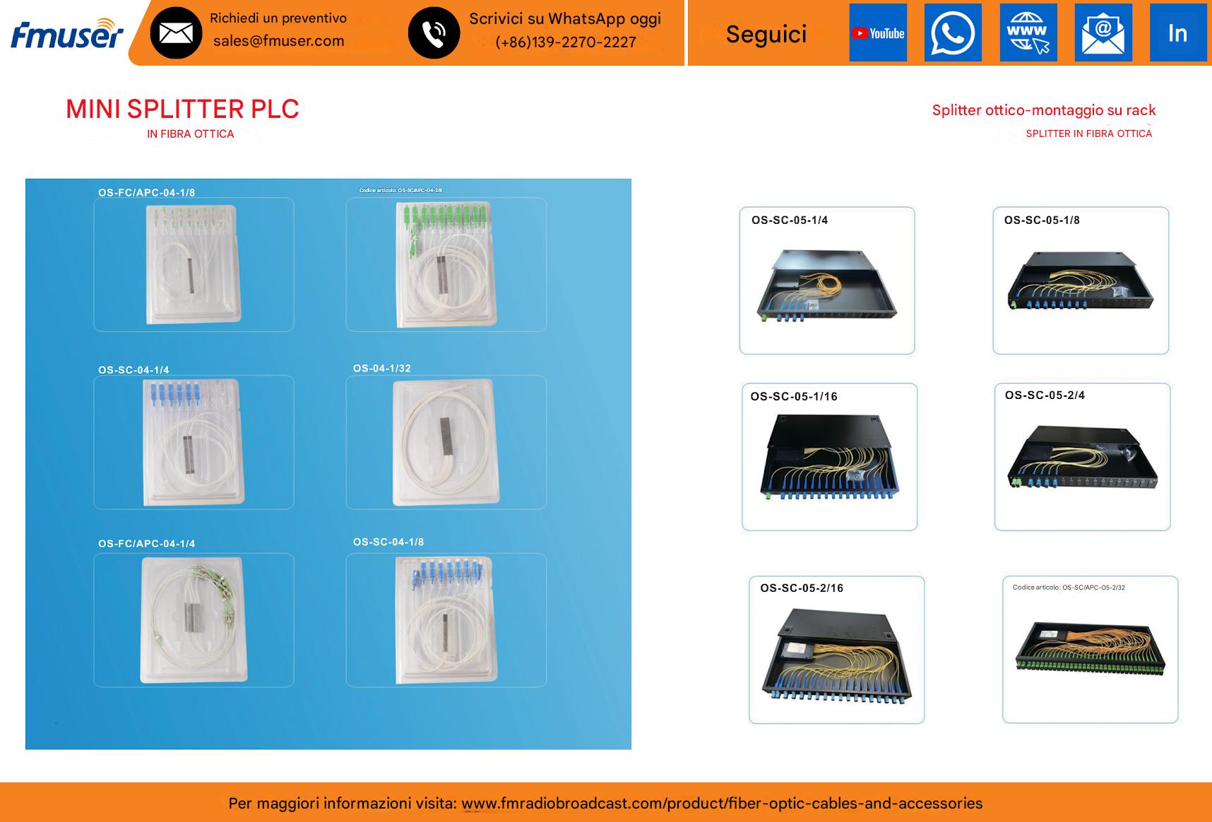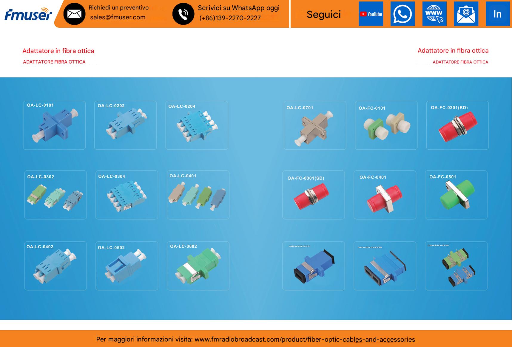 Esplora i componenti in fibra ottica di livello professionale di FMUSER, tra cui connettori, adattatori, splitter e contenitori per telecomunicazioni, data center e distribuzioni FTTX. Presenta opzioni in fibra SM/MM, interfacce LC/SC e design durevoli per garantire un'integrità del segnale e una scalabilità di rete ottimali.