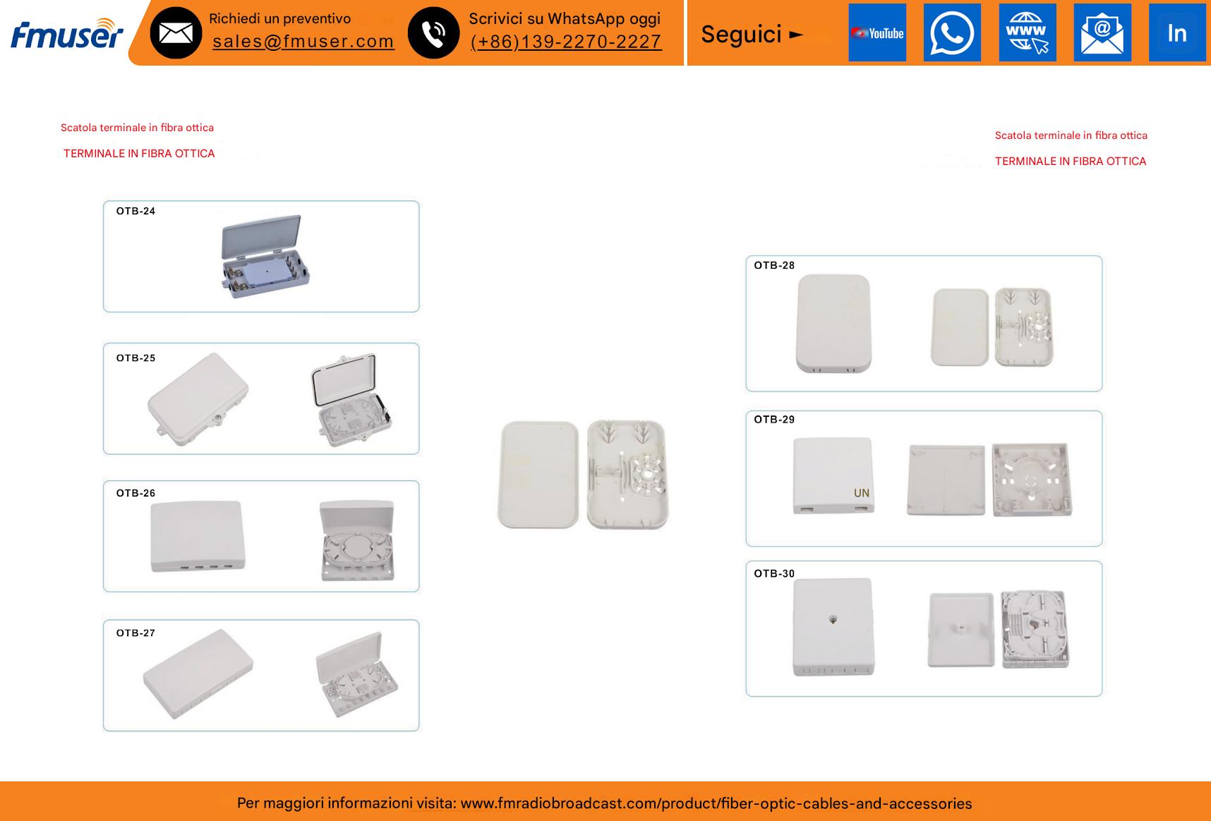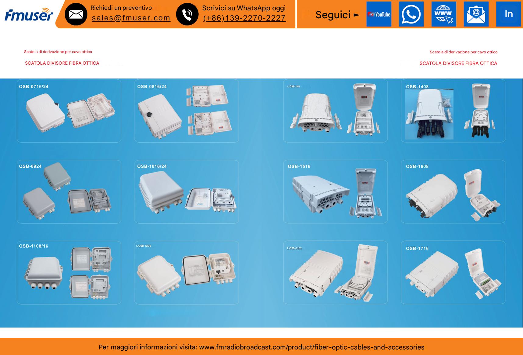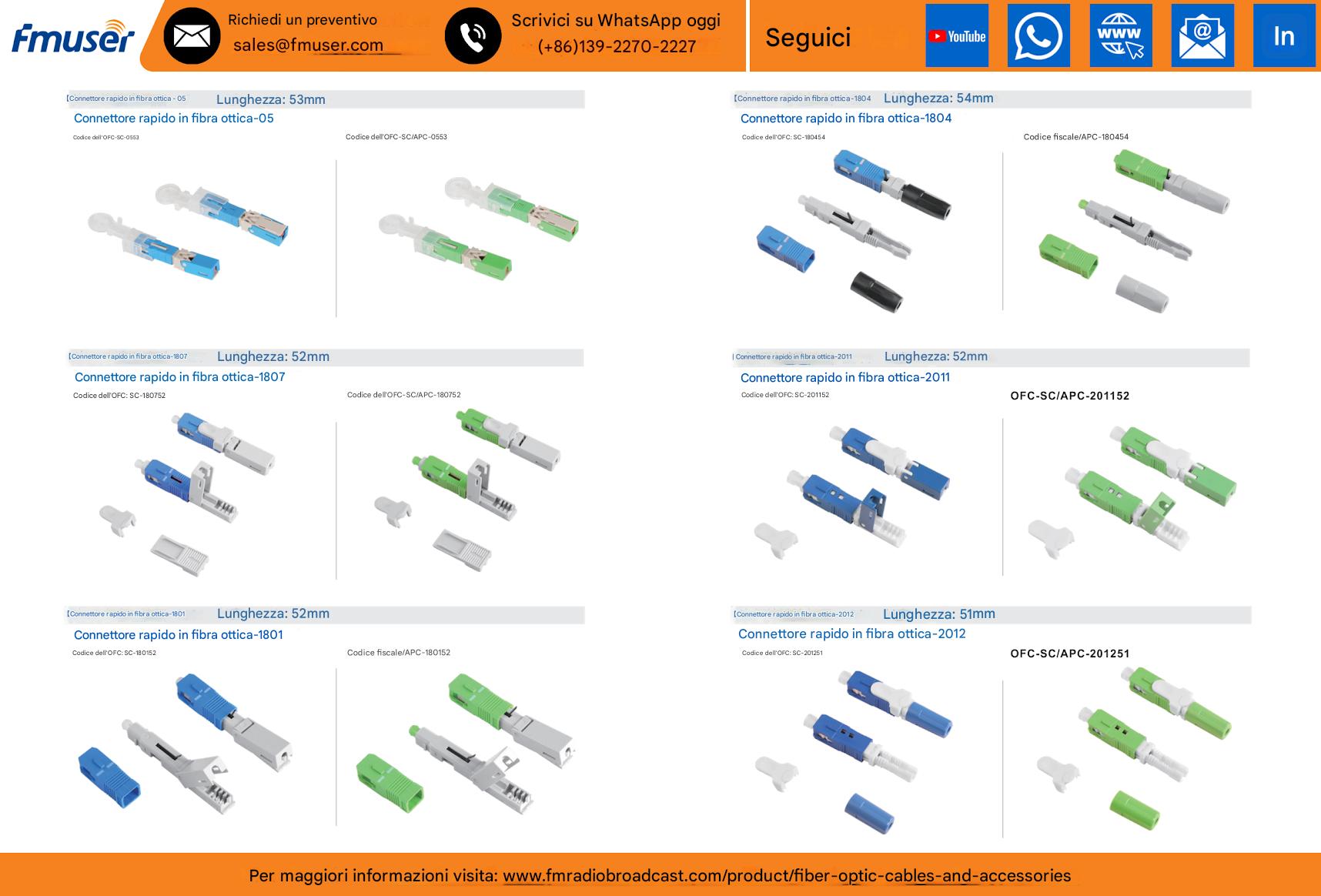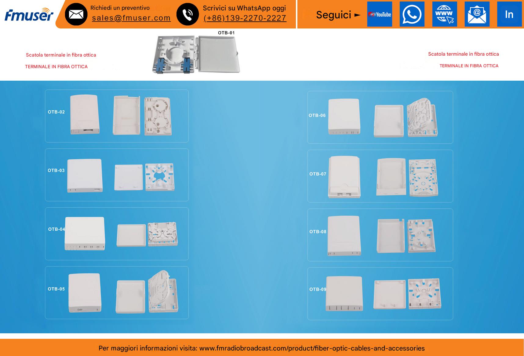Esplora i componenti in fibra ottica di livello professionale di FMUSER, tra cui connettori, adattatori, splitter e contenitori per telecomunicazioni, data center e distribuzioni FTTX. Presenta opzioni in fibra SM/MM, interfacce LC/SC e design durevoli per garantire un'integrità del segnale e una scalabilità di rete ottimali.