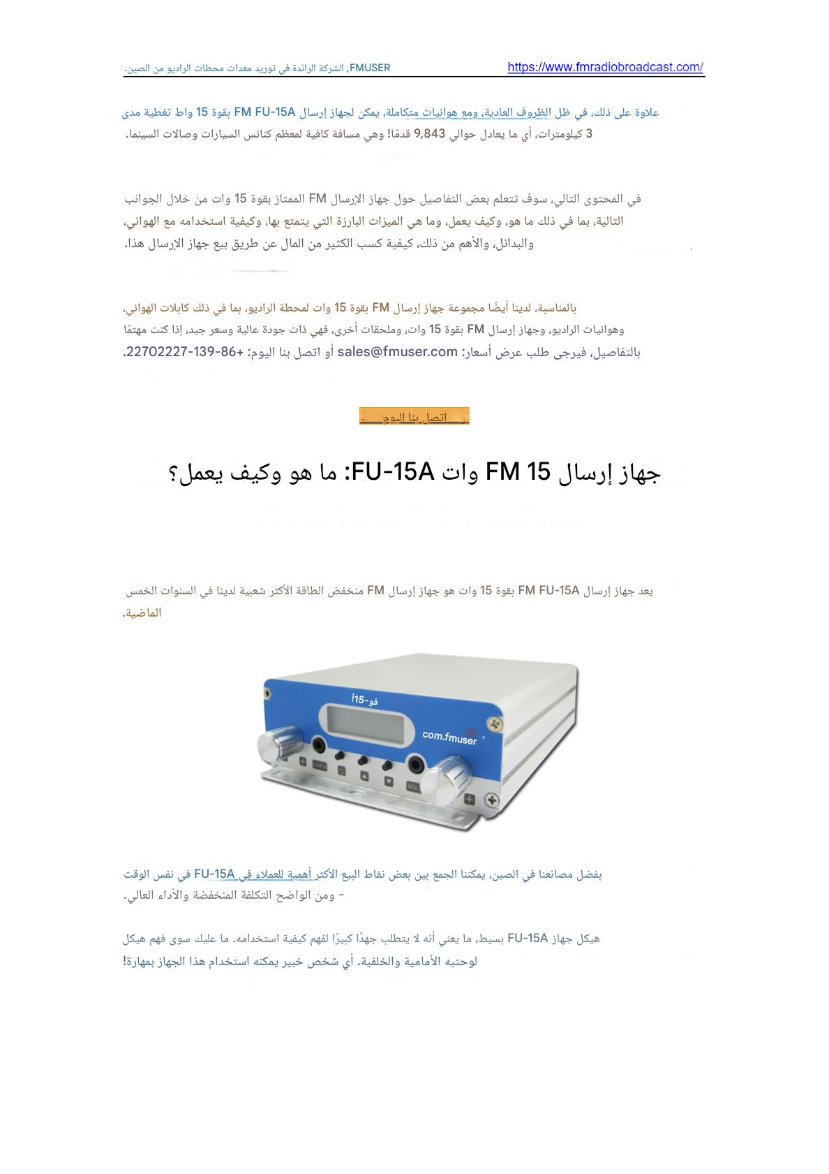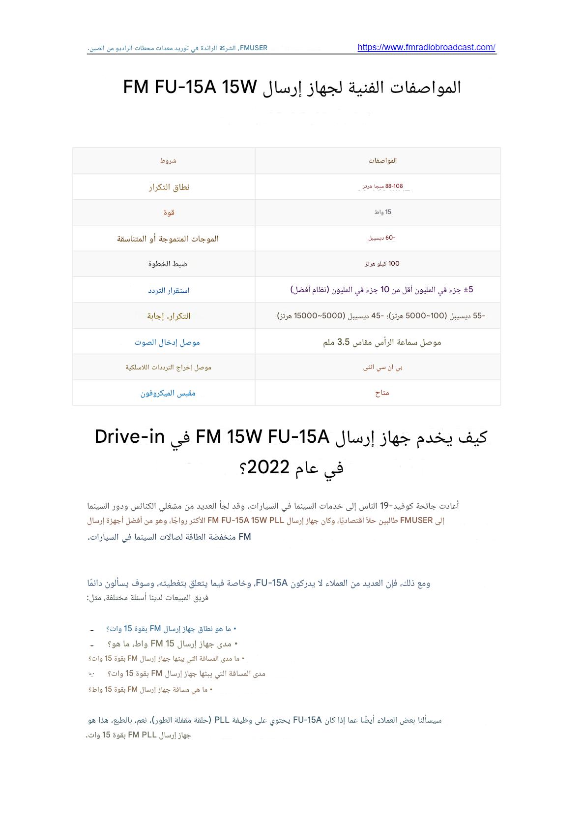 يوفر جهاز إرسال FMUSER FU-15A بقدرة 15 واط بثًا موثوقًا ومنخفض التكلفة للمحطات المحلية والعمليات الصغيرة. يتميز الجهاز بقدرة خرج 15 واط، وتصميمه المدمج، وتغطية إشارة مستقرة، ويدعم بث راديو FM بسهولة الإعداد. مثالي لتنبيهات الطوارئ، والبث في الحرم الجامعي، أو لمحطات البث المحلية الناشئة التي تتطلب معدات مناسبة للميزانية وحاصلة على شهادة ISO.