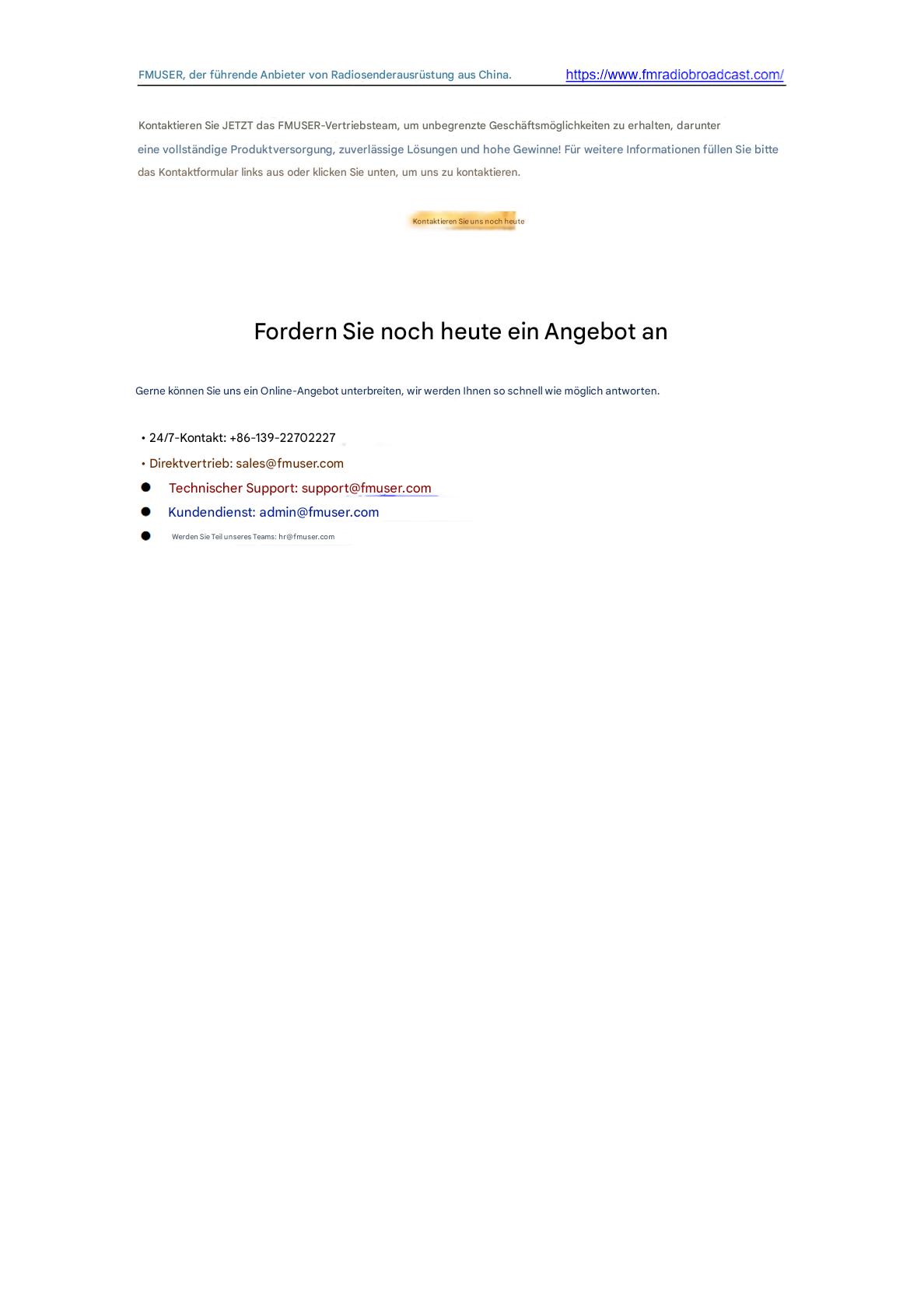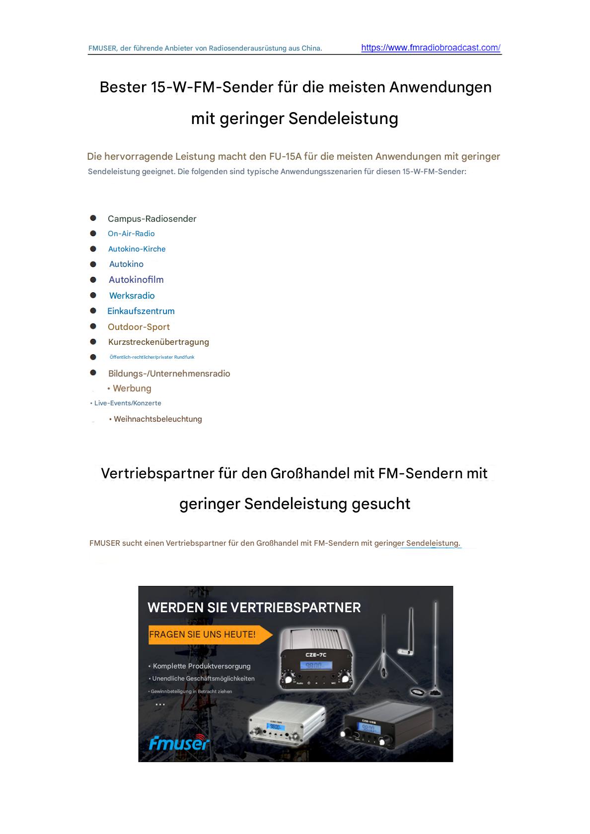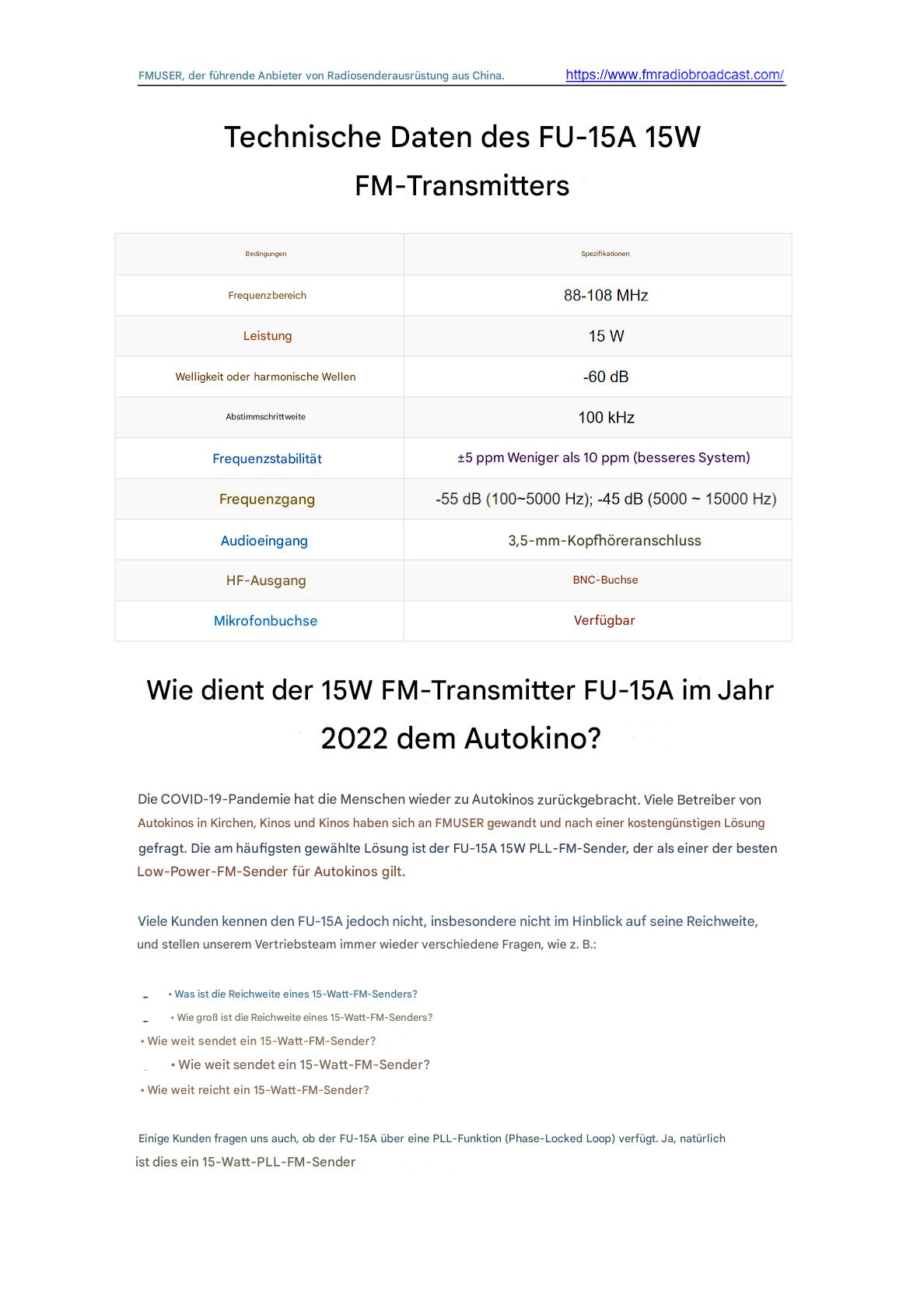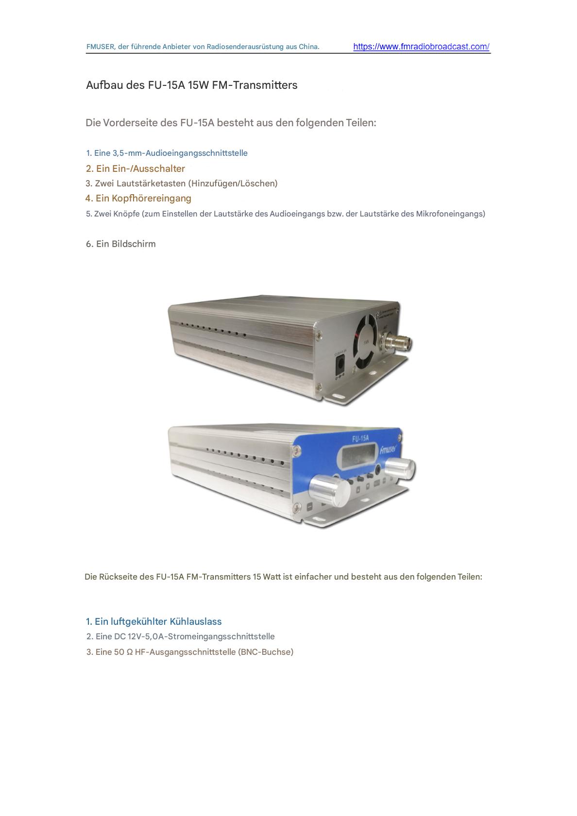 Der 15-W-FM-Sender FMUSER FU-15A bietet zuverlässige und kostengünstige Übertragung für Gemeindesender und kleine Betriebe. Mit 15 W Ausgangsleistung, kompaktem Design und stabiler Signalabdeckung unterstützt er FM-Radioübertragung und lässt sich einfach einrichten. Ideal für Notfallmeldungen, Campus-Übertragungen oder die Gründung lokaler Sender, die kostengünstige, ISO-zertifizierte Geräte benötigen.