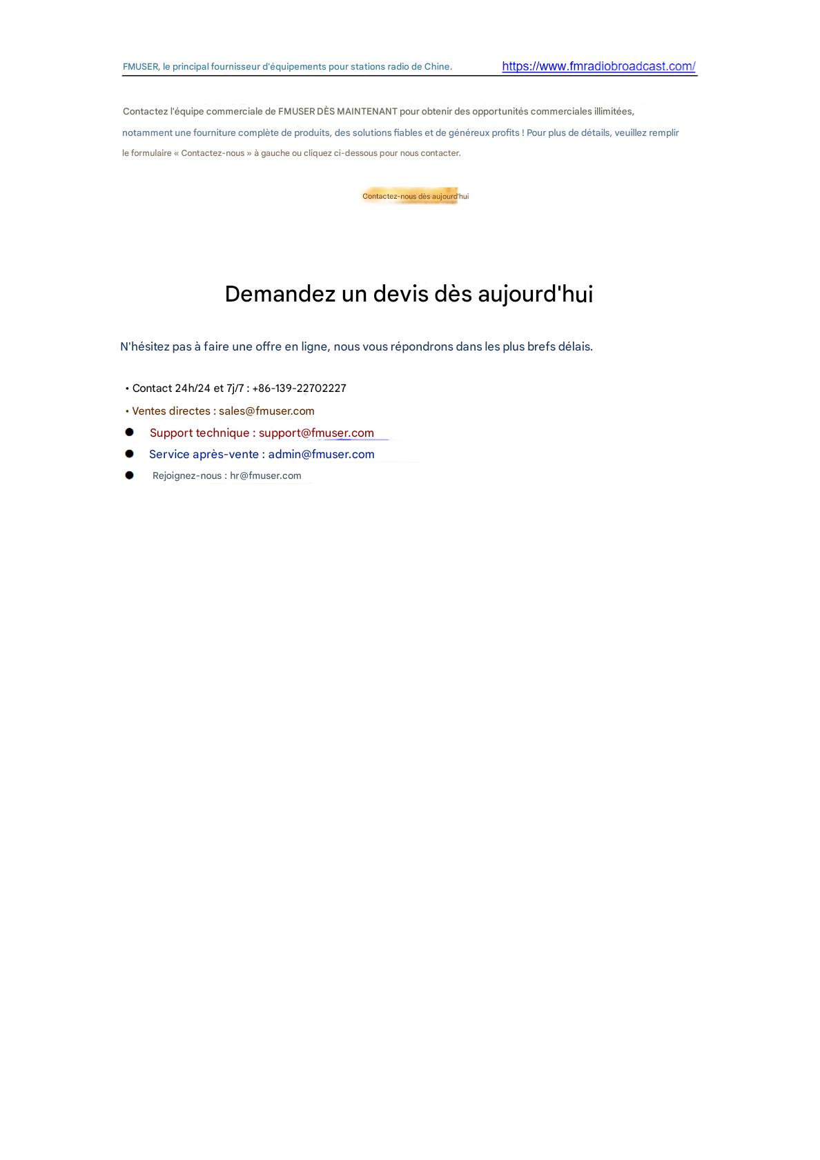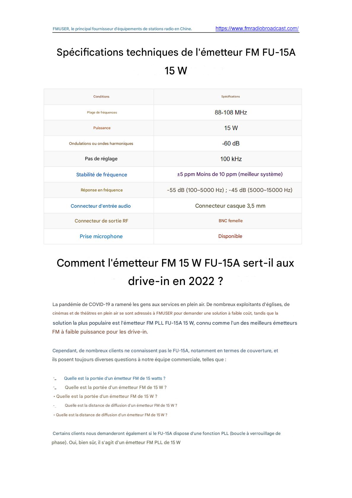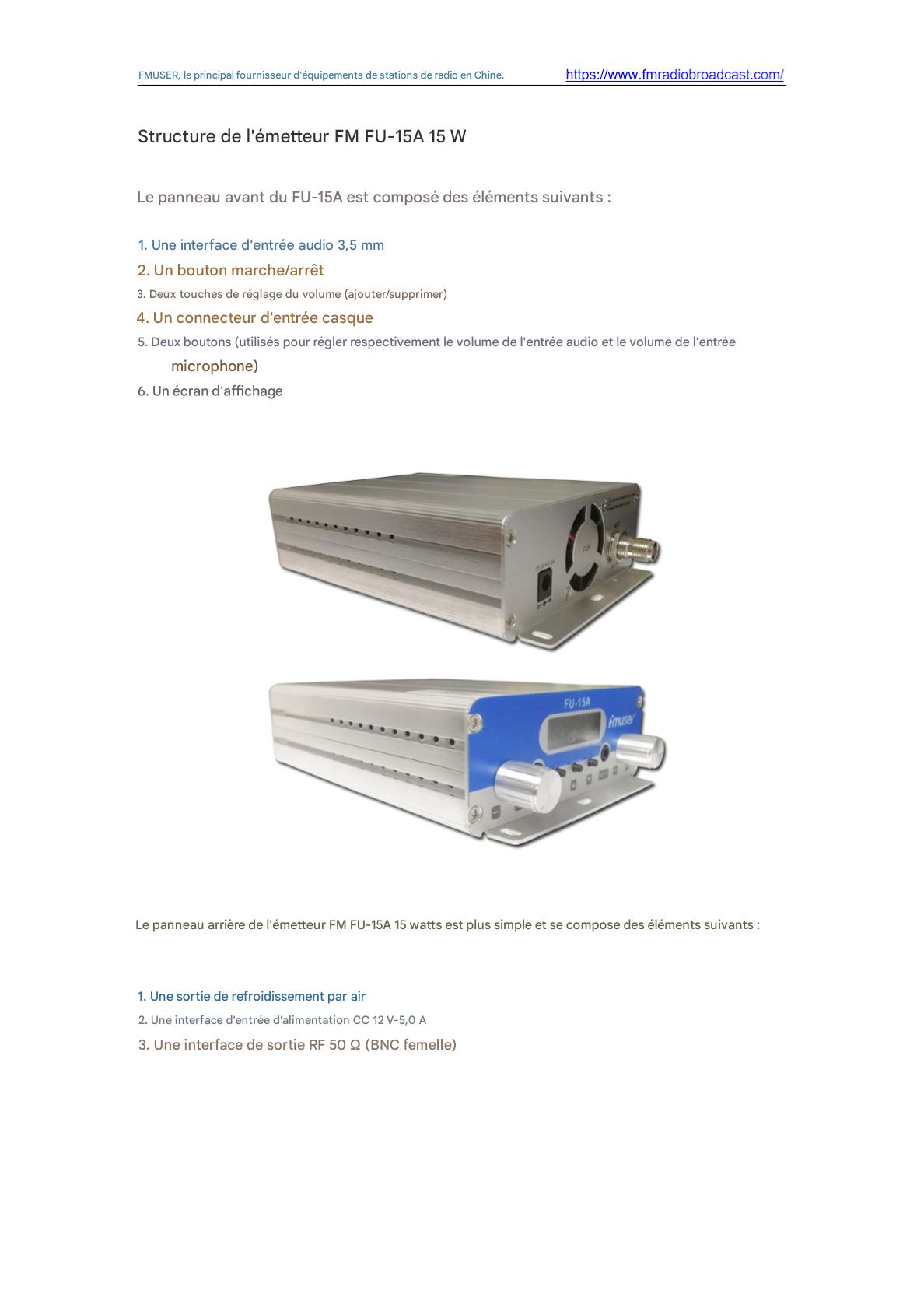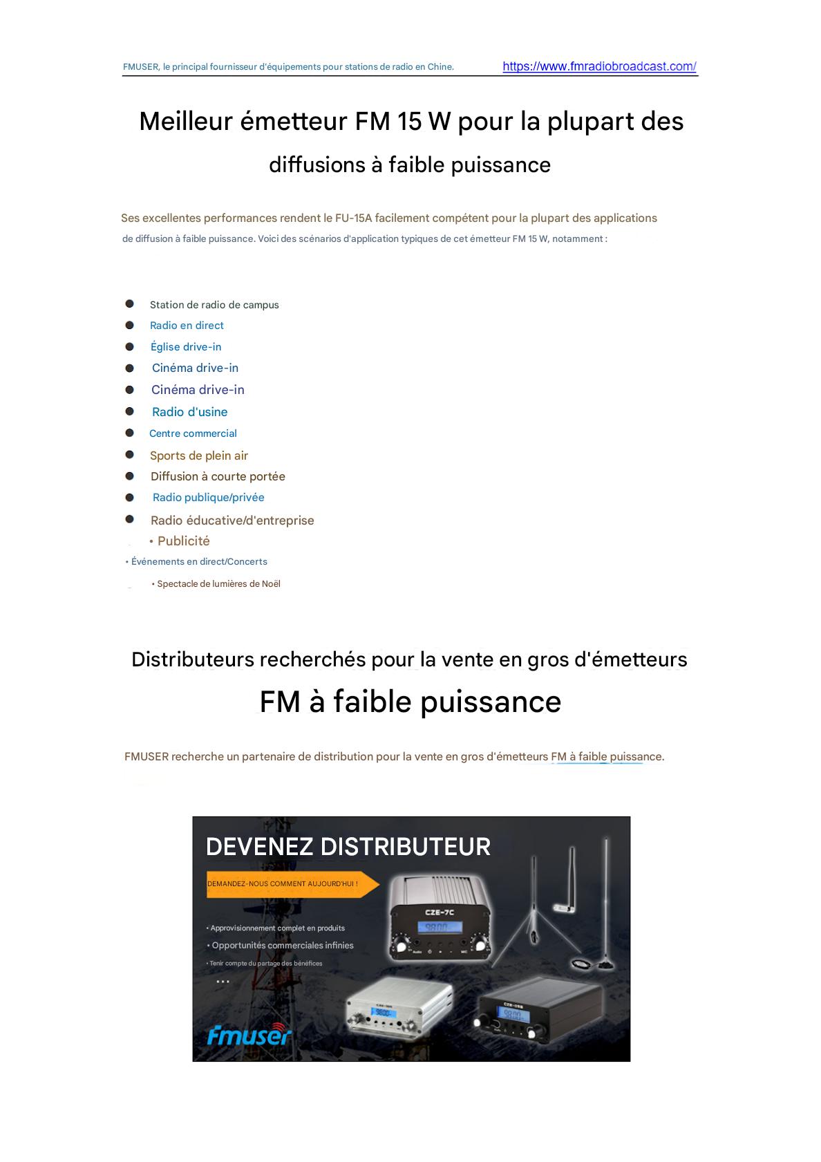 L'émetteur FM FMUSER FU-15A 15 W offre une diffusion fiable et économique aux stations communautaires et aux petites entreprises. Doté d'une puissance de sortie de 15 W, d'un design compact et d'une couverture de signal stable, il prend en charge la transmission radio FM et est facile à installer. Idéal pour les alertes d'urgence, les diffusions sur les campus ou les nouvelles stations locales nécessitant un équipement abordable et certifié ISO.