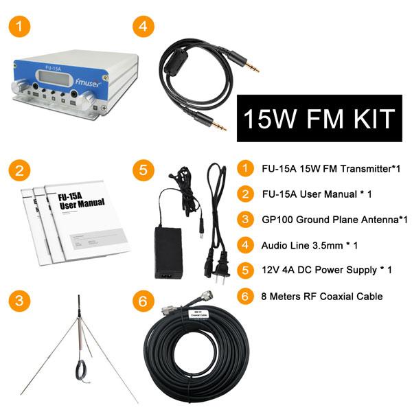 By the way, we also have 15W FM transmitter kit for the radio station, including antenna cables, radio antennas, 15 watt FM transmitter, and other accessories, they are of high quality and good price, if you're interested in details, please ask for a quotation: sales@fmuser.com or call us today: +86-139-22702227