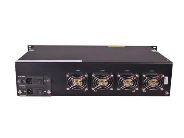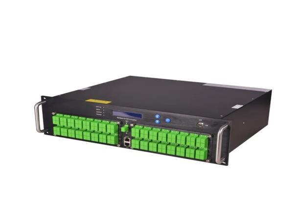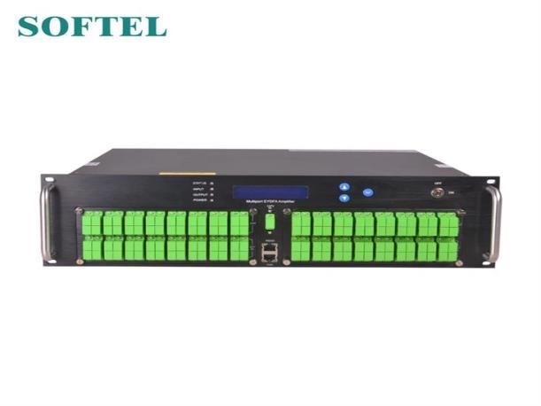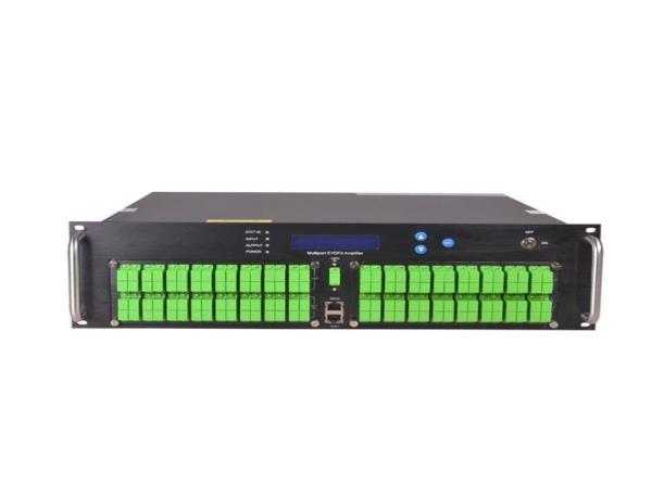 Der 1550-nm-Hochleistungs-Glasfaserverstärker EYDFA der SPA-Serie mit 64 Ports verfügt über eine zweistufige Verstärkung. Die erste Stufe verwendet einen rauscharmen EDFA, die zweite Stufe einen Hochleistungs-EYDFA. Die gesamte optische Ausgangsleistung kann 41 dBm erreichen. Er kann mehrere oder