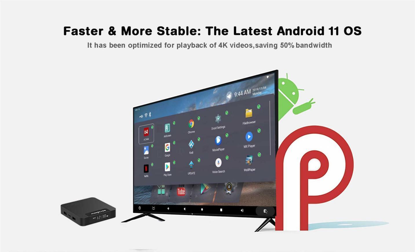 صندوق تلفاز ذكي 4K يعمل بنظام أندرويد 11 STB144X للبيع بالجملة من المصنع