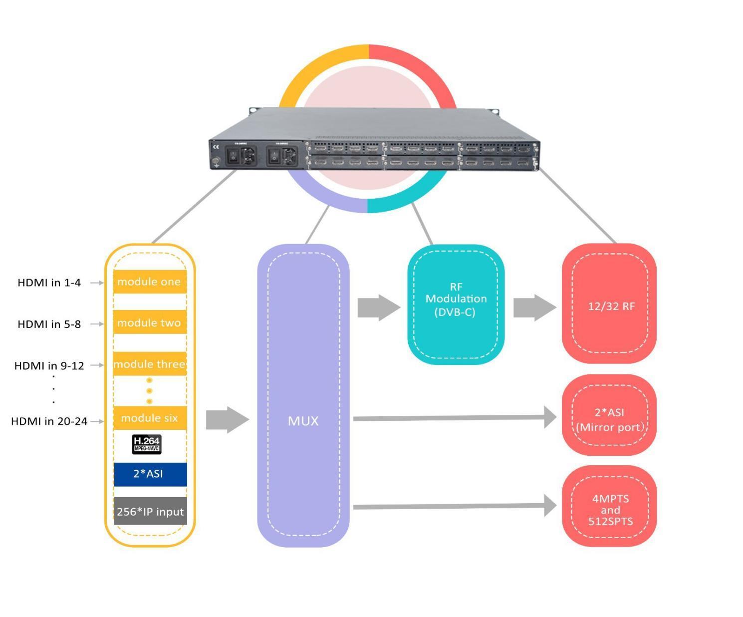 هل تواجه صعوبة في معالجة الفيديو المعقدة في أنظمة CATV؟ يوفر هذا الجهاز حلاً مدمجًا ومرنًا بست وحدات قابلة للتبديل السريع، تدعم ترميز H.264 وتعديل DVB-C QAM. مثالي للبث والتعليم والرعاية الصحية، حيث يوفر جودة فيديو 1080 بكسل بمعدل 60 إطارًا في الثانية ومخرجات 512 SPTS، مما يضمن استقرار نقل الشبكة. معتمد من حيث الموثوقية، وهو خيار موثوق به للمدن الكبرى والفنادق والمنتجعات. • 6 وحدات مستقلة قابلة للتبديل السريع | • ترميز H.264 | • تعديل DVB-C QAM | • 1080 بكسل بمعدل 60 إطارًا في الثانية | • مخرجات 512 SPTS