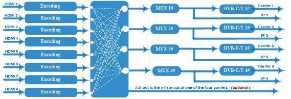 • 8 HDMI-Eingänge | • 4 DVB-C/T-HF-Ausgänge | • MPEG-4 AVC/H.264-Kodierung | •