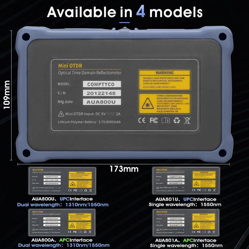 • 4.3-inch capacitive touch screen | • 12 integrated functions (auto OTDR, expert OTDR, RJ45 tracker) | • 26dB dynamic range & 8GB memory | • 4000mAh battery for 12+ hours operation | • Perfect for FTTX and network maintenance