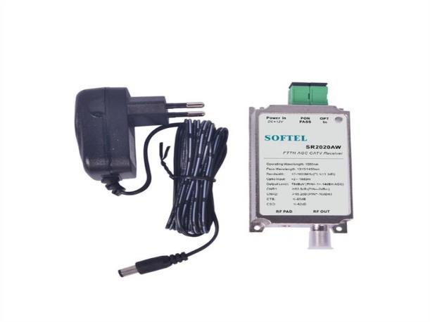 Le SR2020AW, d'une bande passante de 47 à 1 000 MHz, est un récepteur optique CATV triple play à faible consommation, hautes performances et économique, pour la télévision analogique et numérique. Il est équipé d'un tube récepteur optique haute sensibilité et d'un circuit d'adaptation à faible bruit. La réception à haute puissance optique peut être ajustée par le niveau du PAD et la sortie de limitation de lecture. Le SR2020AW présente ainsi d'excellentes caractéristiques dans une large plage dynamique de puissance optique reçue de +2 dBm à -21 dBm.