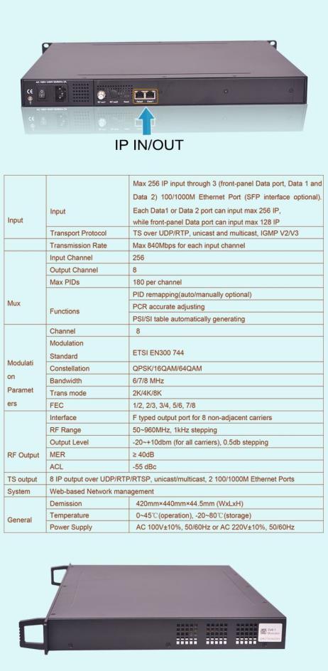 Ищете высокопроизводительное и экономичное решение для вещания DTV? Модулятор IP to DVB-T SFT3308T 8 в 1 объединяет 8 каналов мультиплексирования и 8 каналов модуляции, поддерживая до 256 входов IP и 8 несмежных выходов RF (50 МГц ~ 960 МГц). Разработанное для систем DTV следующего поколения, это универсальное устройство обеспечивает высокую интеграцию, исключительную производительность и масштабируемость, что делает его идеальным для вещателей и системных интеграторов. • 8 каналов мультиплексирования и 8 каналов модуляции | • 256 входов IP через порт GE | • 8 несмежных выходов RF (50 МГц ~ 960 МГц) | • Высокая интеграция и низкая стоимость | • Адаптируется к системам DTV следующего поколения