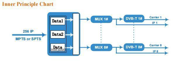 • 8 canali multiplexing e 8 canali modulanti | • 256 ingressi IP tramite porta GE | • 8 uscite RF non adiacenti (50 MHz~960 MHz) | • Elevata integrazione e basso costo | • Adattabile ai sistemi DTV di nuova generazione