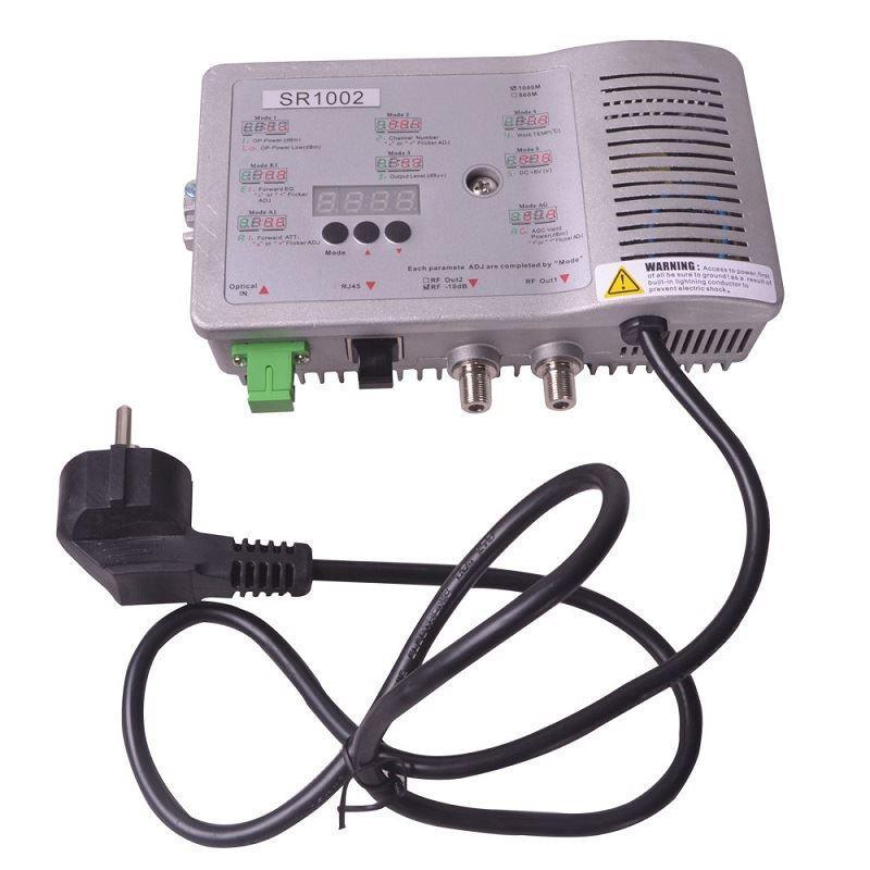 El SR1002 es nuestro receptor óptico de red CATV de alta gama más reciente, con amplio rango de potencia óptica, alto nivel de salida y bajo consumo de energía. Es el equipo ideal para construir la red NGB de alto rendimiento.