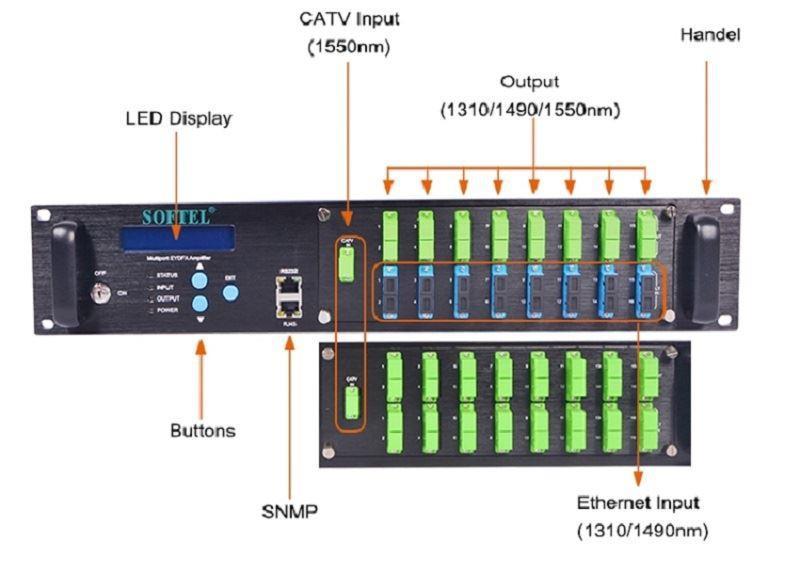 Вам нужно надежное оптическое усиление для вашей сети FTTH или FTTx PON? EDFA 32 Pon WDM — это высокопроизводительный монтируемый в стойку оптический усилитель высотой 2U с 32 портами, обеспечивающий исключительную выходную мощность на длине волны 1550 нм. Благодаря опциям двойного входа, регулируемому выходу до 4 дБм и удобной в обслуживании функции затухания 6 дБм это устройство обеспечивает бесперебойную работу оптоволокна с возможностью горячего подключения. Встроенные лазеры WDM 1310/1490/1550 нм и JDSU/Oclaro делают его надежным решением для модернизации сети и расширения емкости. Идеально подходит для услуг передачи данных с узкой вставкой IPQAM, поддерживает удаленное управление через RJ45 и SNMP. • Варианты двойного входа | • Регулируемый выход до 4 дБм | • Встроенный WDM 1310/1490/1550 нм | • Лазеры накачки JDSU/Oclaro | • Удаленное управление через RJ45 и SNMP