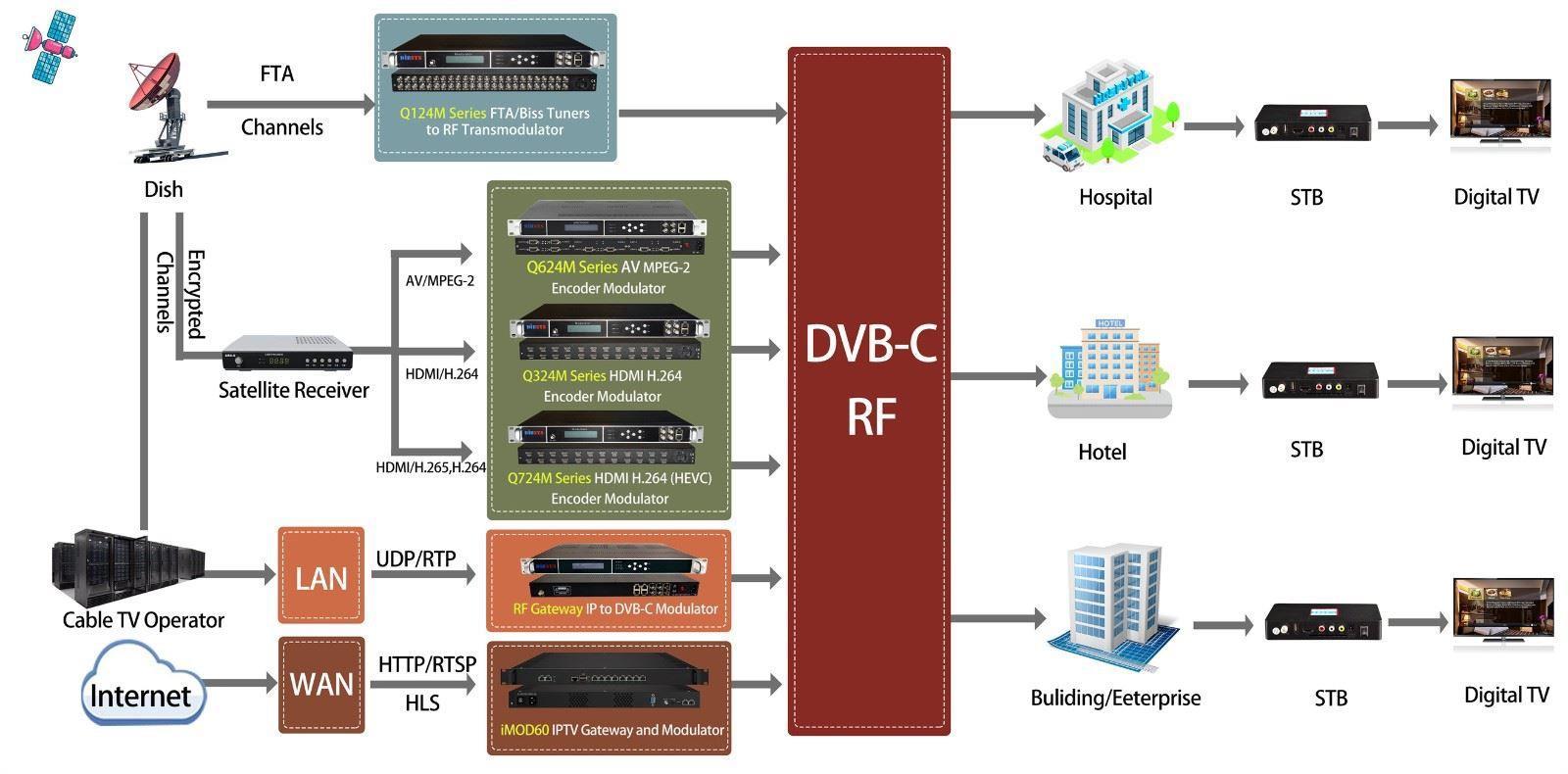 هل تواجه صعوبة في استخدام أنظمة التلفزيون التناظري القديمة في الفنادق أو المستشفيات؟ تقدم DIBSYS محول إشارة متعدد الخدمات ومحول إشارة داخلي فعال من حيث التكلفة، يُرقي أنظمة MATV التقليدية بسلاسة إلى التلفزيون الرقمي. بفضل ترميز H.264 وموالفات QAM RF، يوفر هذا الحل جودة HDTV فائقة الوضوح مع استخدام الكابلات المحورية الحالية. مثالي للفنادق والمستشفيات والمجتمعات، حيث يدعم 24 قناة HD/SD ويضمن التوافق مع معايير DVB-T وISDB-T وATSC. بفضل اعتماده على الموثوقية، يُعد الخيار الأمثل لترقيات التلفزيون الرقمي القابلة للتطوير والصيانة المنخفضة. • ترميز HDMI وH.264 | • موالفات QAM RF | • سعة 24 قناة | • دعم DVB-T/ISDB-T/ATSC