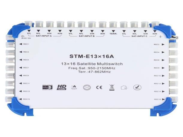 Ищете надежное решение для управления несколькими спутниковыми и наземными телевизионными сигналами? Мультисвитч CM1316E 13×16 предлагает 12 спутниковых IF-входов и 1 наземный TV-вход, поддерживая до 16 спутниковых ресиверов. Благодаря встроенным усилителям, низким вносимым потерям (0 дБ SAT, 5 дБ Terr.) и высокой изоляции (35 дБ LNB-LNB) это устройство обеспечивает оптимальное качество сигнала. Идеально подходит для установки внутри помещений, имеет прочный корпус из листового металла и поддерживает сигналы DisEqC 2.0. Идеально подходит для домашних и коммерческих систем спутникового телевидения. • 12 SAT IF + 1 Terr. TV-входов | • Поддерживает 16 спутниковых ресиверов | • Встроенный усилитель | • Низкие вносимые потери и высокая изоляция | • Поддержка сигнала DisEqC 2.0
