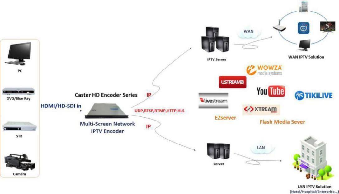 هل تواجه صعوبة في تقديم محتوى عالي الجودة متعدد القنوات بتقنية HD عبر أجهزة متنوعة؟ يُعدّ جهاز Caster-T315 رباعي القنوات لتحويل HD-SDI إلى IP الحل الأمثل، إذ يوفر ترميزًا متعدد القنوات في الوقت الفعلي باستخدام ترميزات H.264 وMPEG-4 وMPEG-2. صُمّم الجهاز لتطبيقات البث والتلفزيون عبر الإنترنت (IPTV) والوسائط المتعددة، ويدعم 4 ملفات تعريف بدقة Full HD بدقة 1080 بكسل، ويوفر معدلات بت مُحسّنة تبلغ 1500 كيلوبت في الثانية للدقة القياسية (SD)، و2.5 ميجابت في الثانية للدقة العالية 720 بكسل، و5 ميجابت في الثانية للدقة العالية 1080 بكسل. يعمل الجهاز على نظام تشغيل Linux مدمج، ويضمن تكاملاً سلسًا مع Adobe Flash وWowza وخوادم Windows Media، مما يجعله خيارًا موثوقًا به للشبكات الأرضية والفضائية والكابلية. • مداخل HD-SDI/HDMI رباعية القنوات | • ترميز H.264/MPEG-4/MPEG-2 | • بروتوكولات RTMP/HTTP/UDP/RTSP | • تحويل البث لأعلى/لأسفل | • تشغيل متواصل على مدار الساعة طوال أيام الأسبوع