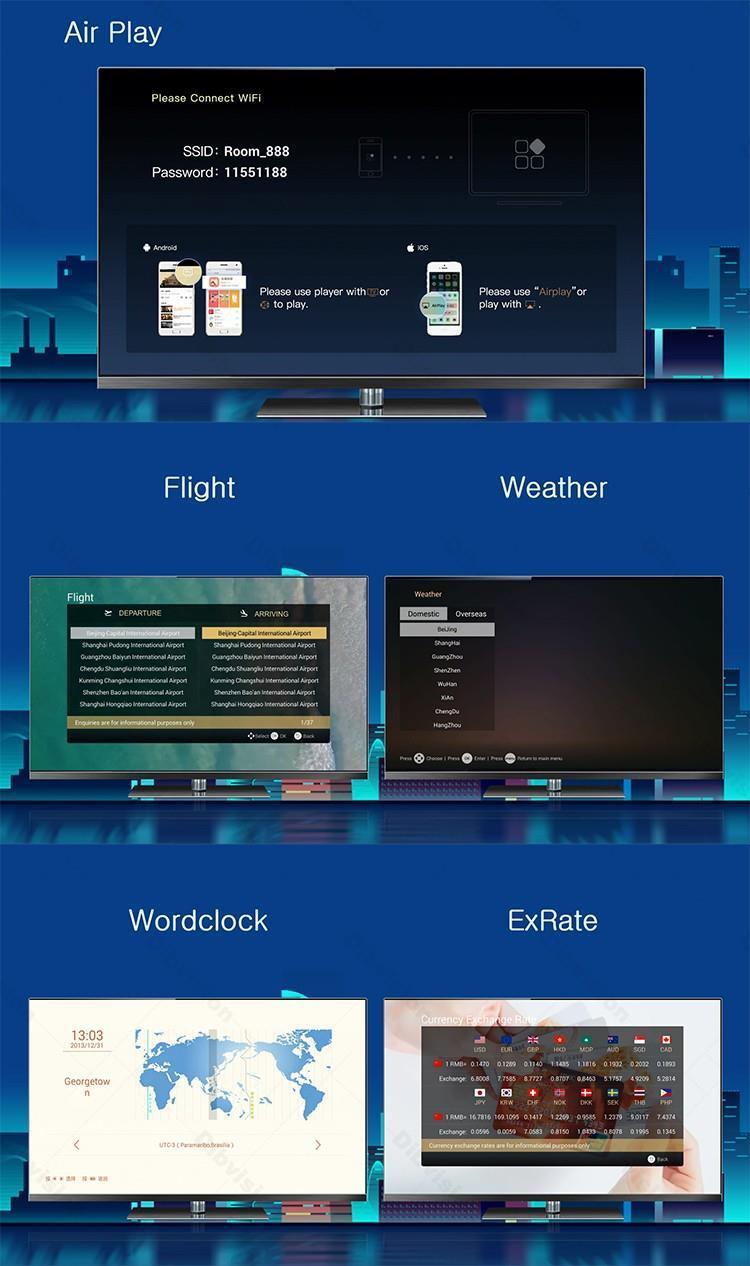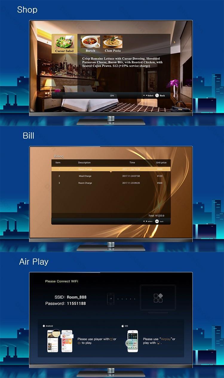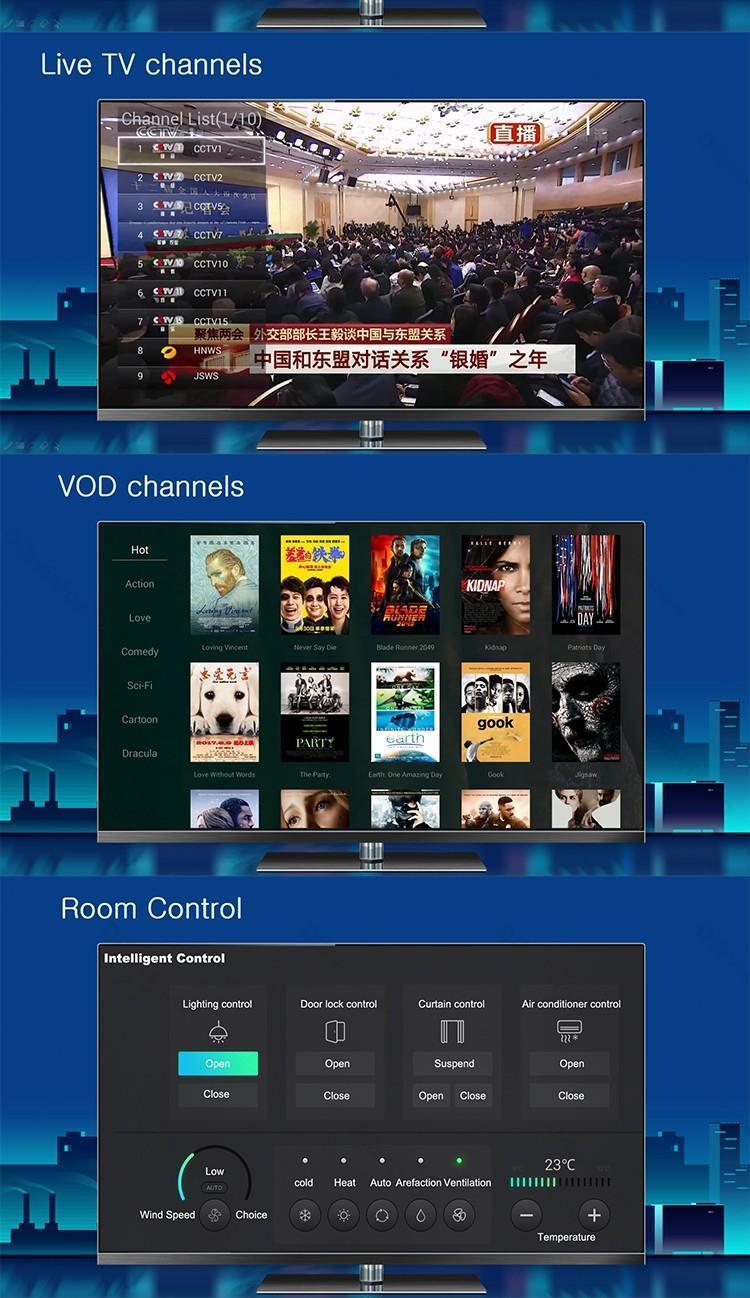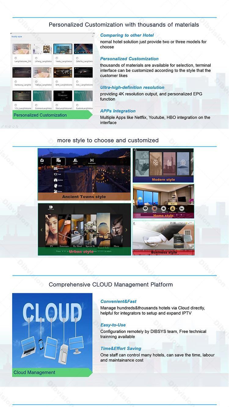 Боретесь с устаревшими системами гостиничного телевидения, которые не впечатляют гостей? Наше решение IPTV для отелей класса люкс предлагает разрешение сверхвысокой четкости 4K и персонализированную функцию EPG, гарантируя первоклассный просмотр. Разработанная для индустрии гостеприимства, эта система оснащена комплексной облачной платформой управления для бесперебойной работы и настройки. Благодаря быстрой доставке и простым обновлениям программ она снижает сложность эксплуатации и повышает удовлетворенность гостей. Идеально подходит для отелей класса люкс, стремящихся повысить уровень развлечений в номерах. | Разрешение 4K | Управление в облаке | Настраиваемый EPG | Быстрая доставка | Индустрия гостеприимства