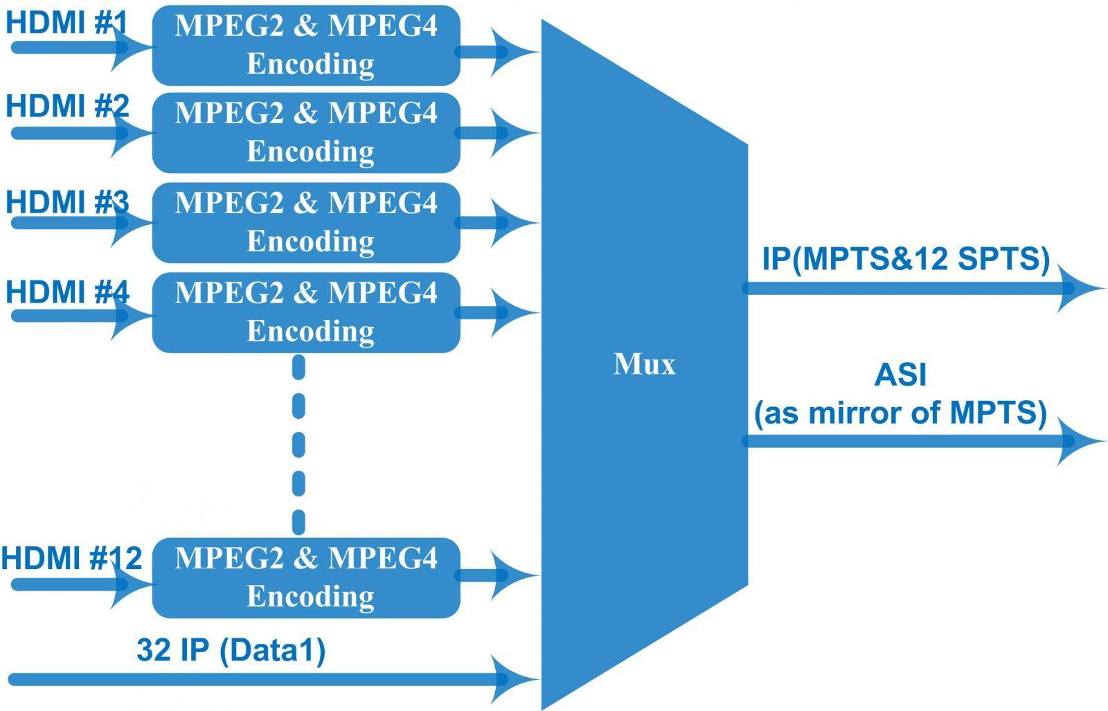 * 12 ingressi HDMI con codifica MPEG2 e MPEG4 AVC/H.264 HD/SD