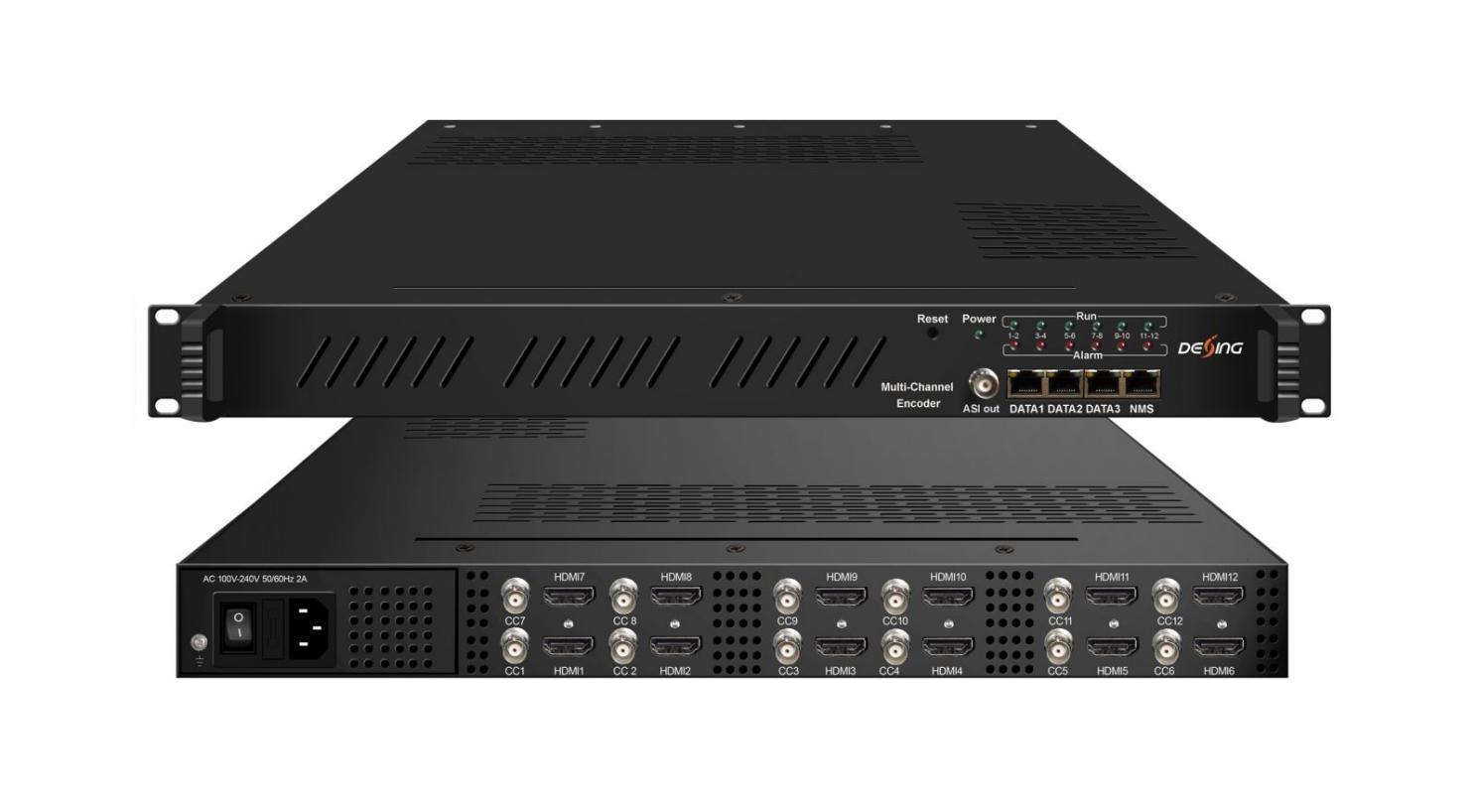NDS3544K Multi-Channel Encoder è il nuovo dispositivo di codifica e multiplexing audio e video per la trasmissione con funzionalità potenti. È dotato di 12 interfacce di ingresso audio e video HDMI, 12 porte di ingresso CC (Closed Caption) e 32 ingressi IP su UDP e RTP tramite Data1.