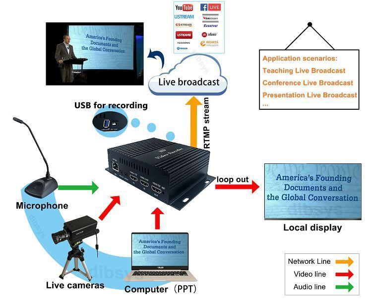 H.264/H.265 con loop out HD-MI. La seconda funzione, input IP su output HD-MI&CVBS, output di decodifica H.264/H.265, supporto output HD-MI fino a UHD/4K. La terza funzione, supporta la transcodifica da IP a IP, supporta la conversione del protocollo IP e la conversione reciproca H.264 h.265. Supporta i protocolli RTSP/HTTP/UDP/RTMP/RTMPS/HLS/RTP/SRT. Anche la codifica e la decodifica possono funzionare simultaneamente, supporta la funzione PIP. La serie Magicbox HD7 Plus con le sue potenti funzioni può essere ampiamente utilizzata nell'istruzione, nell'assistenza sanitaria, nell'IPTV, nelle conferenze, nell'istruzione a distanza, nelle interviste ai notiziari, nel settore bancario, nei trasporti e in altri settori. Questa è una scelta conveniente e funzionale per i clienti che hanno bisogno di dispositivi di codifica, decodifica e transcodifica ma non hanno bisogno di usarli contemporaneamente.