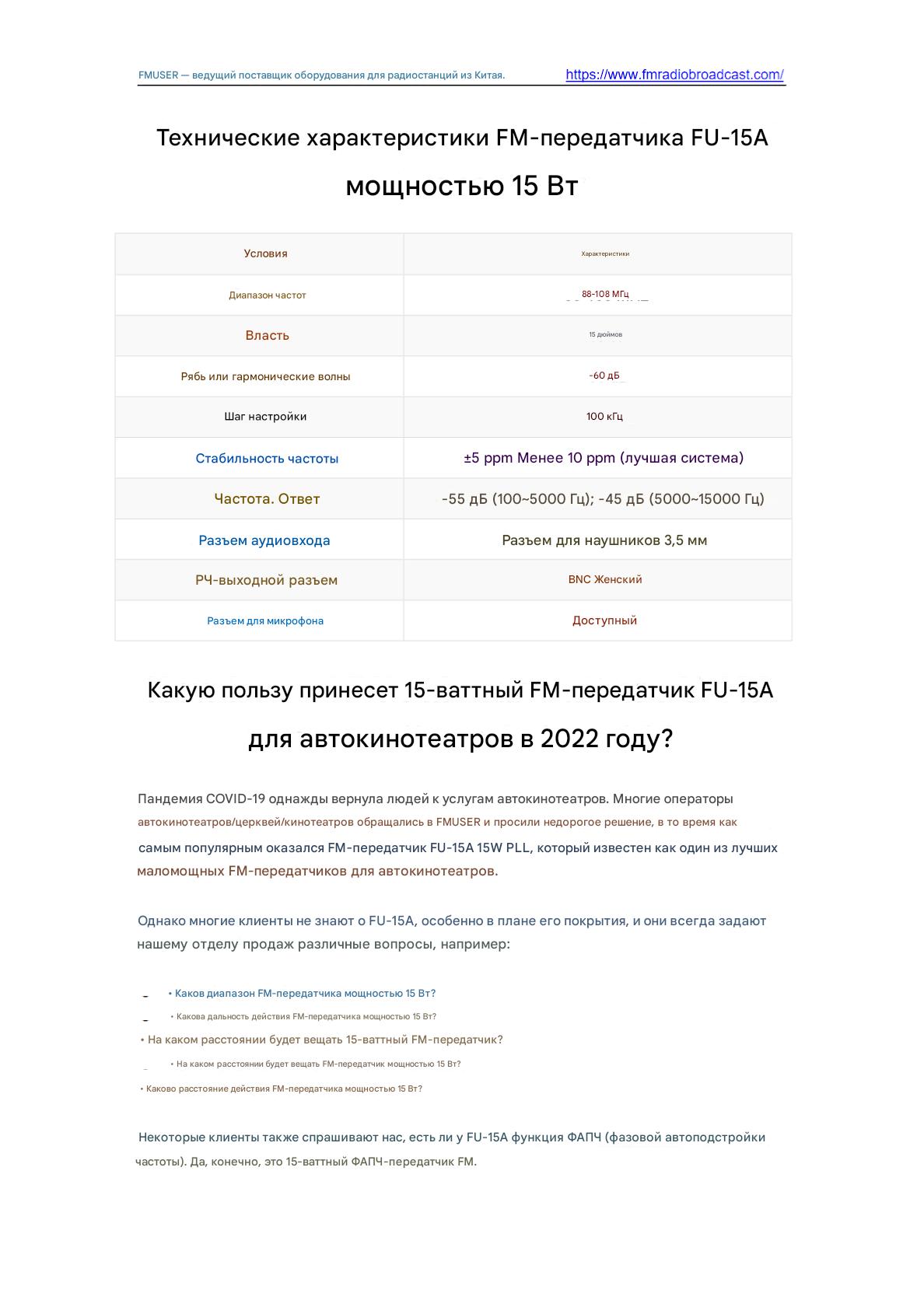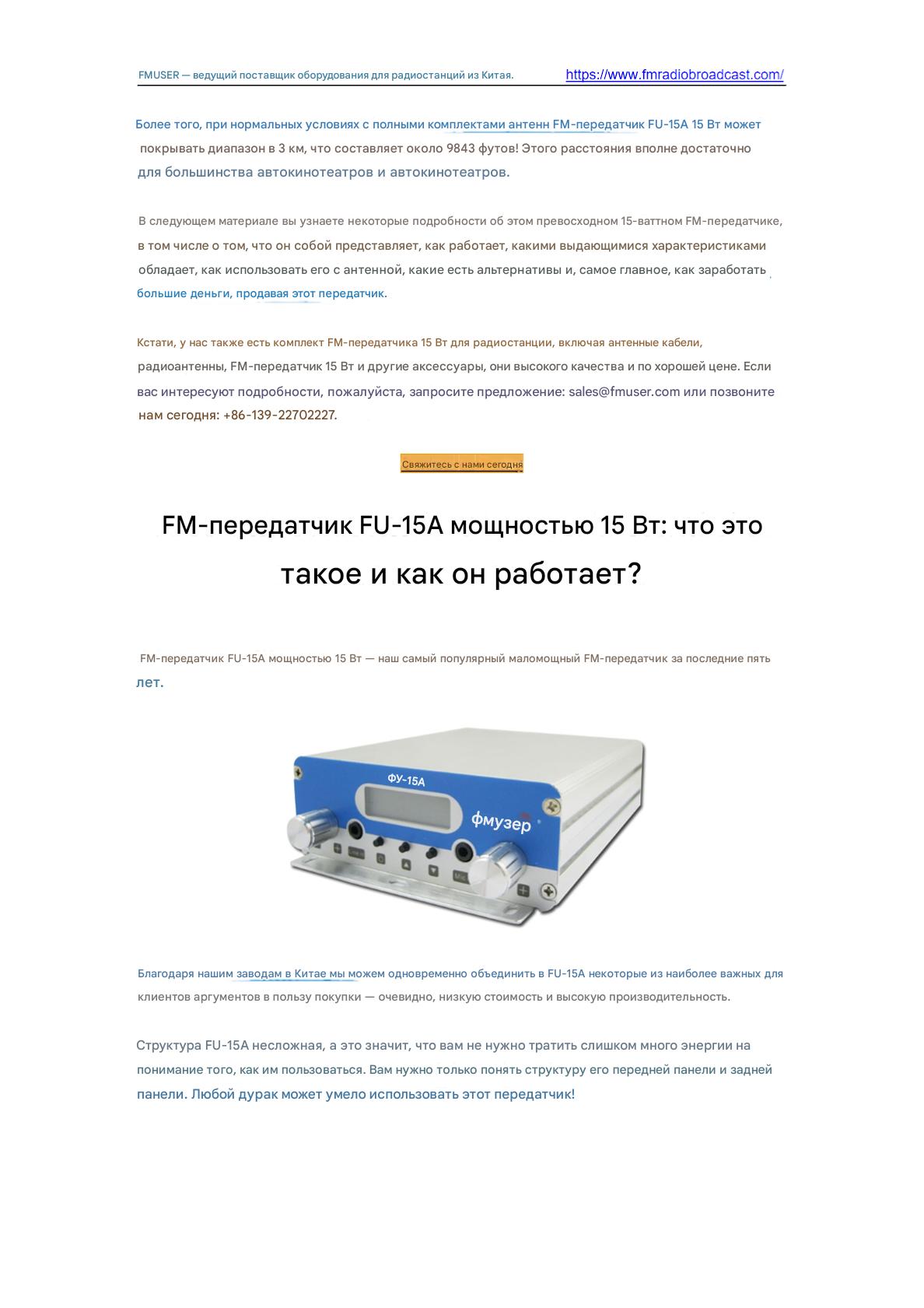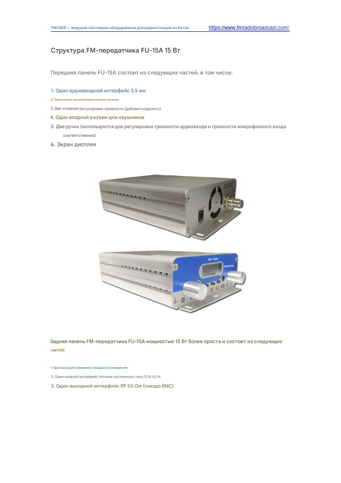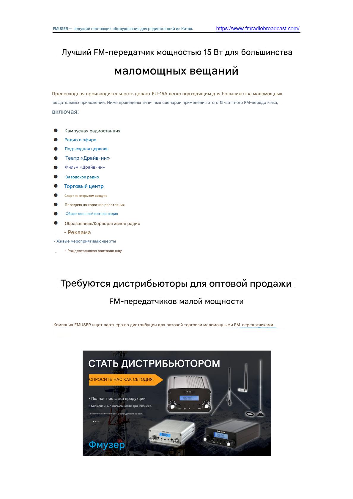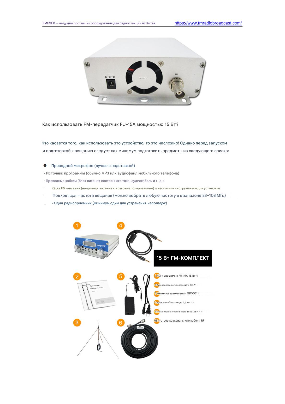 Передатчик FM FMUSER FU-15A 15W обеспечивает надежное недорогое вещание для общественных станций и небольших предприятий. Благодаря выходной мощности 15 Вт, компактному дизайну и стабильному покрытию сигнала он поддерживает передачу FM-радио с простой настройкой. Идеально подходит для оповещений о чрезвычайных ситуациях, трансляций в кампусе или запуска местных станций, требующих бюджетного оборудования с сертификатом ISO.