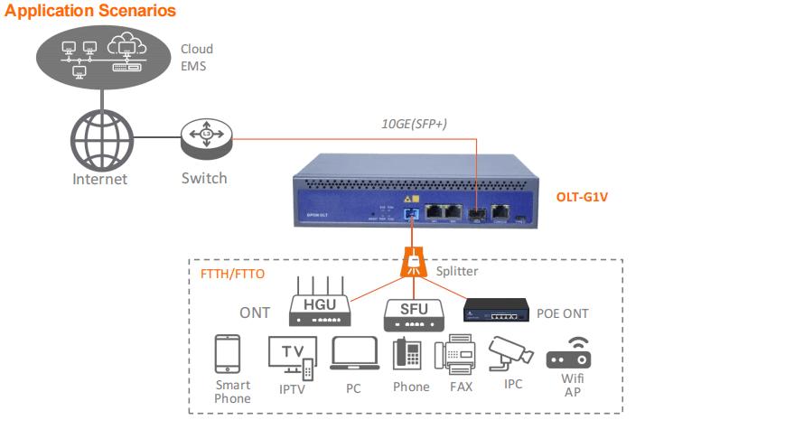 Der FTTH-GPON-OLT-1-Port kann häufig in FTTH, SOHO, kleinen Geschäftsbüros und anderen Anwendungsszenarien verwendet werden.