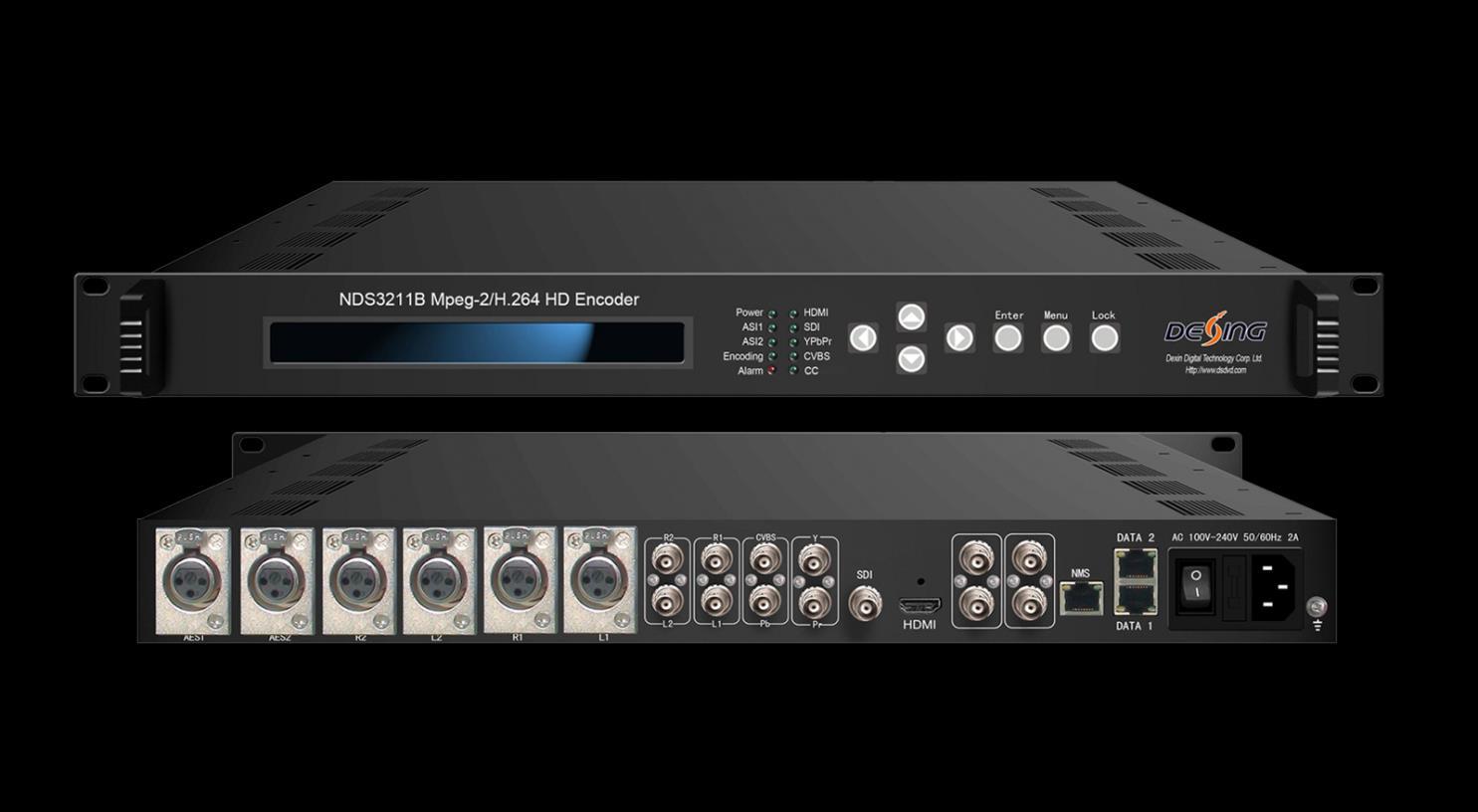Der NDS3211B Mpeg-2/ H.264 HD Encoder ist das neue Audio- und Video-Encodergerät für den Rundfunk mit leistungsstarker Funktionalität. Es ist mit mehreren Videoeingangsschnittstellen (HDMI, SDI, YPbPr und CVBS) und Audioeingangsschnittstellen (AES, BNC und XLR) ausgestattet, um die Kompatibilität mit verschiedenen Signalquellen zu ermöglichen.