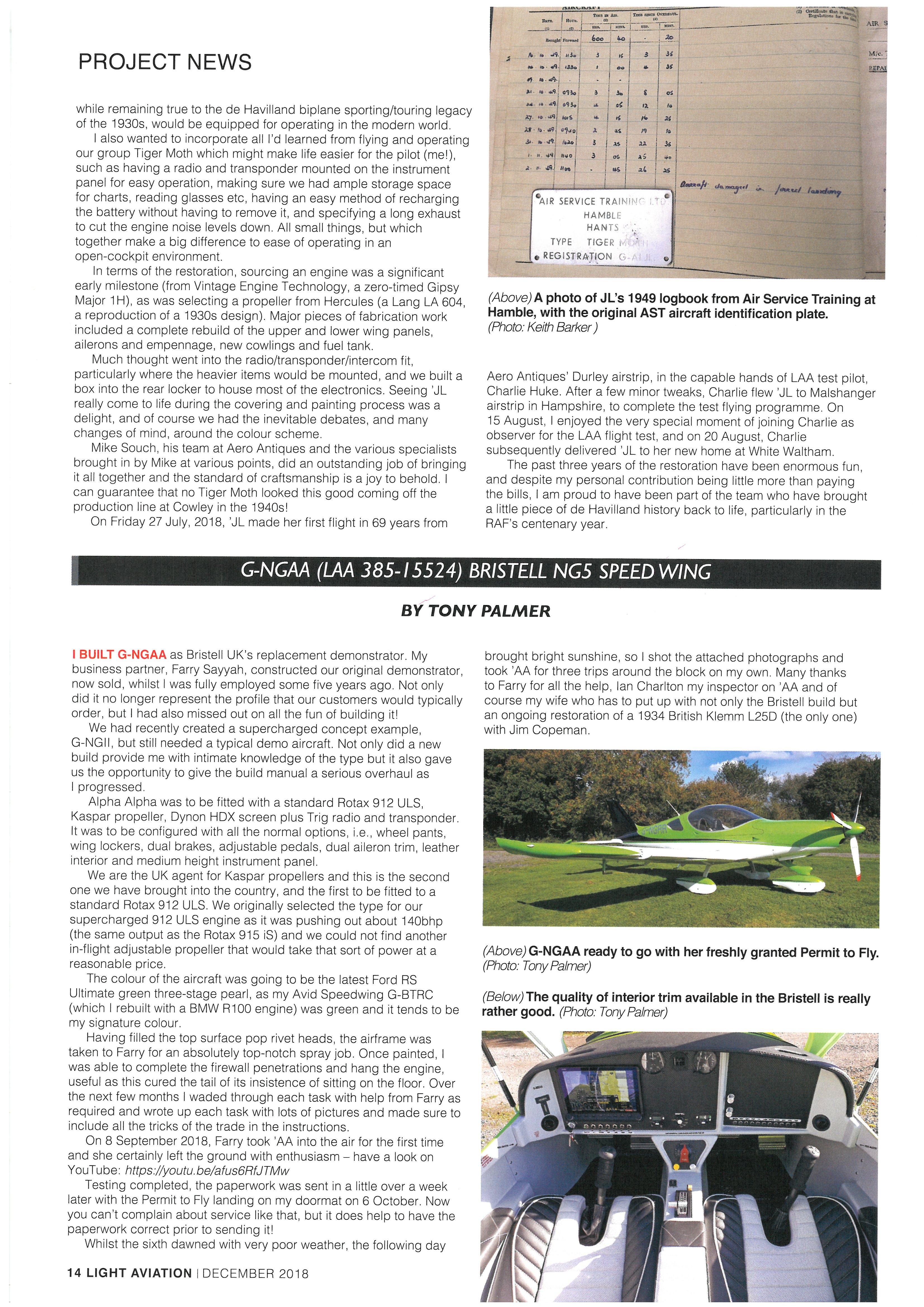 The 19-year Falco F8L, Tiger Moth DH82A restoration, new demo Bristell NG5, Slingsby T61FVenture