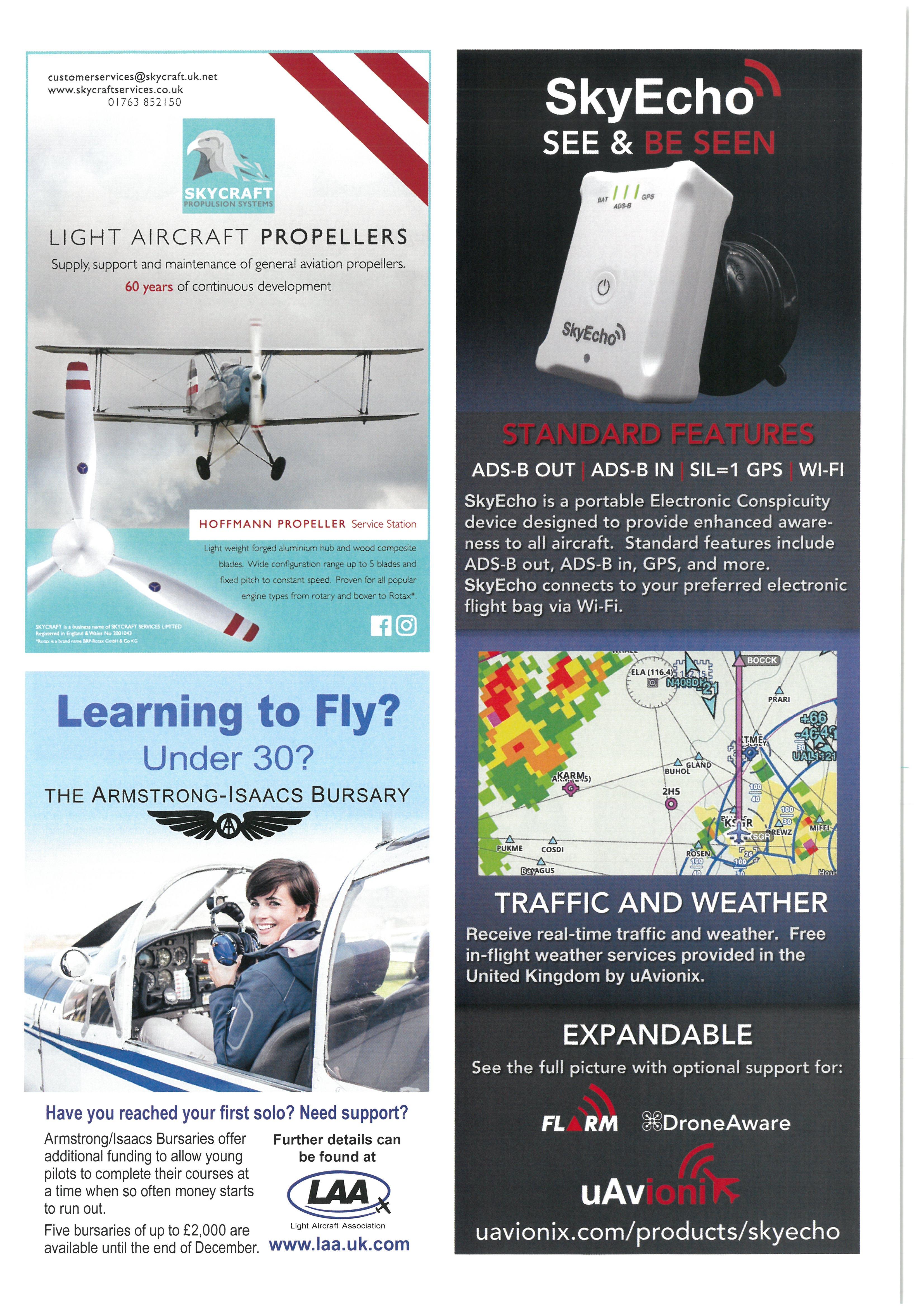 Whilston the subject of new pilots, ifyou know anybody under 30 learning to fly, please tell ther about our Armstrong-lsaacs Bursary scheme which isoffering five £1,500 bursaries to help post-solo students complete their training. Closing date for entrants is 31 December and they can read all about it and complete an application form via our website. There is a ‘Bursary’ tab on the left-hand side of the Home page (www.laa.uk.com).