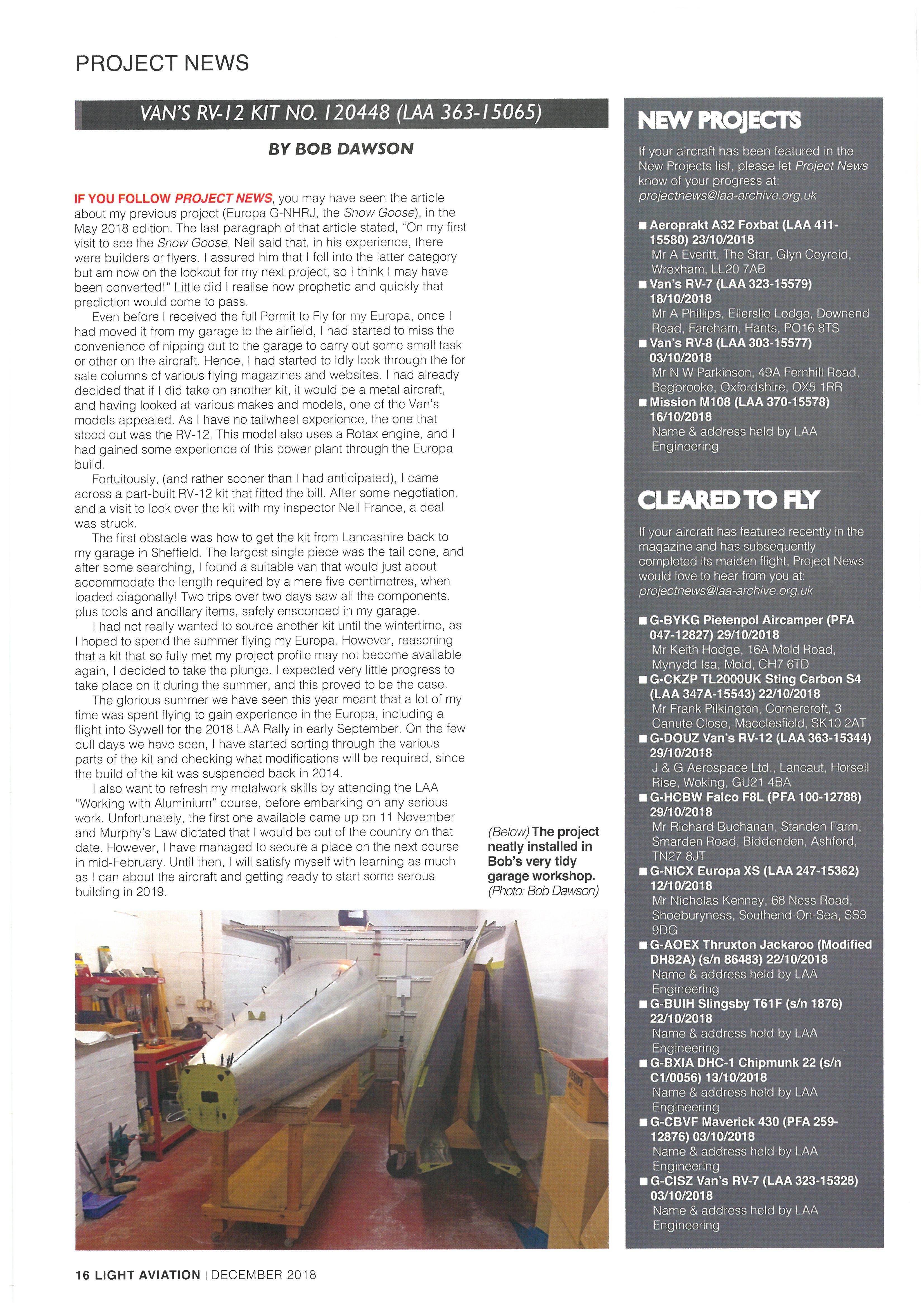 which | hope you'llfind usefulfor planningyour year ahead. Looking back, |think 2018 has had its ups and downs but at least the weather has been better than most for flying.