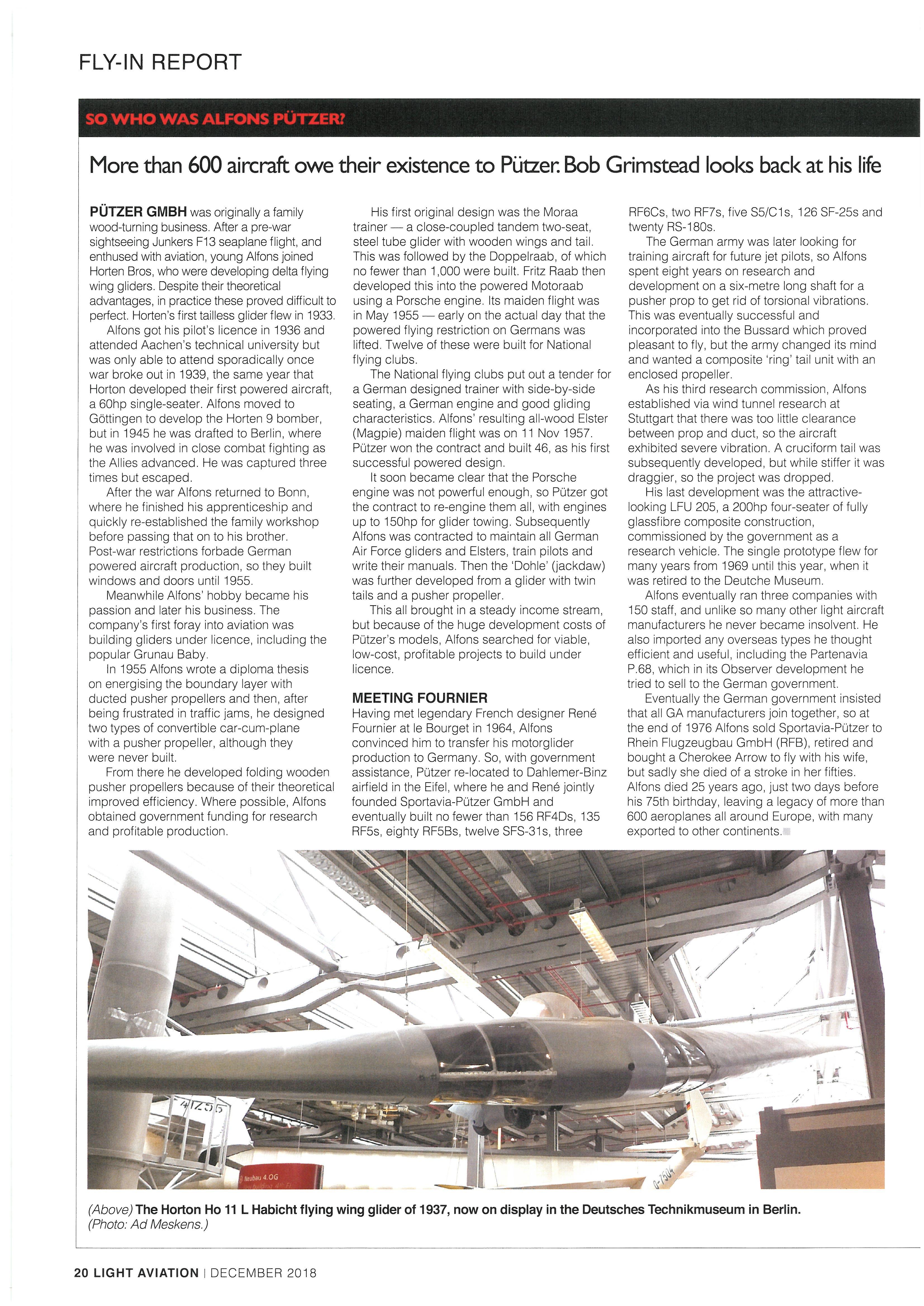 Bob Grimstead flies to Bonn Hangelar for the centenary celebrations of Alfons Putzer