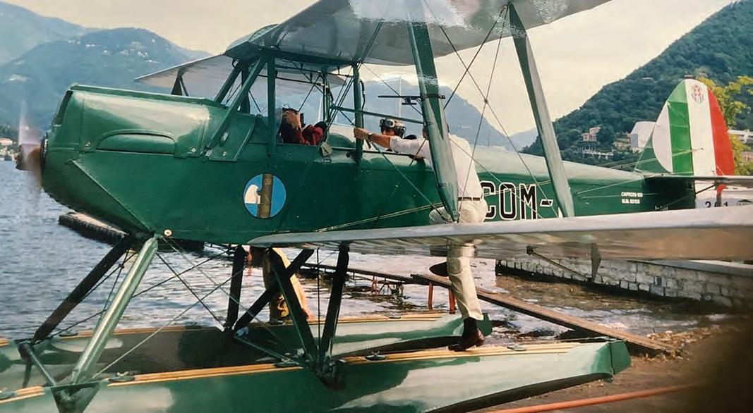 Below Float flying at Lake Como, Italy in a Caproni CA100, a clone of a Gipsy Moth, which Henry had rigged for the owner.
