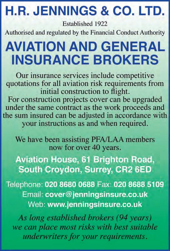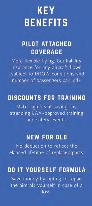 AIRCRAFT APPROVED? Members and readers should note that the inclusion of all advertisements in the commercial or classified sections of this magazine does not necessarily mean that the product or service is approved by the LAA. In particular, aircraft types, or examples of types advertised, may not, for a variety of reasons, be of a type or standard that is eligible for the issue of a LAA Permit to Fly. You should not assume that an aircraft type not currently on the LAA accepted type list will eventually be accepted.