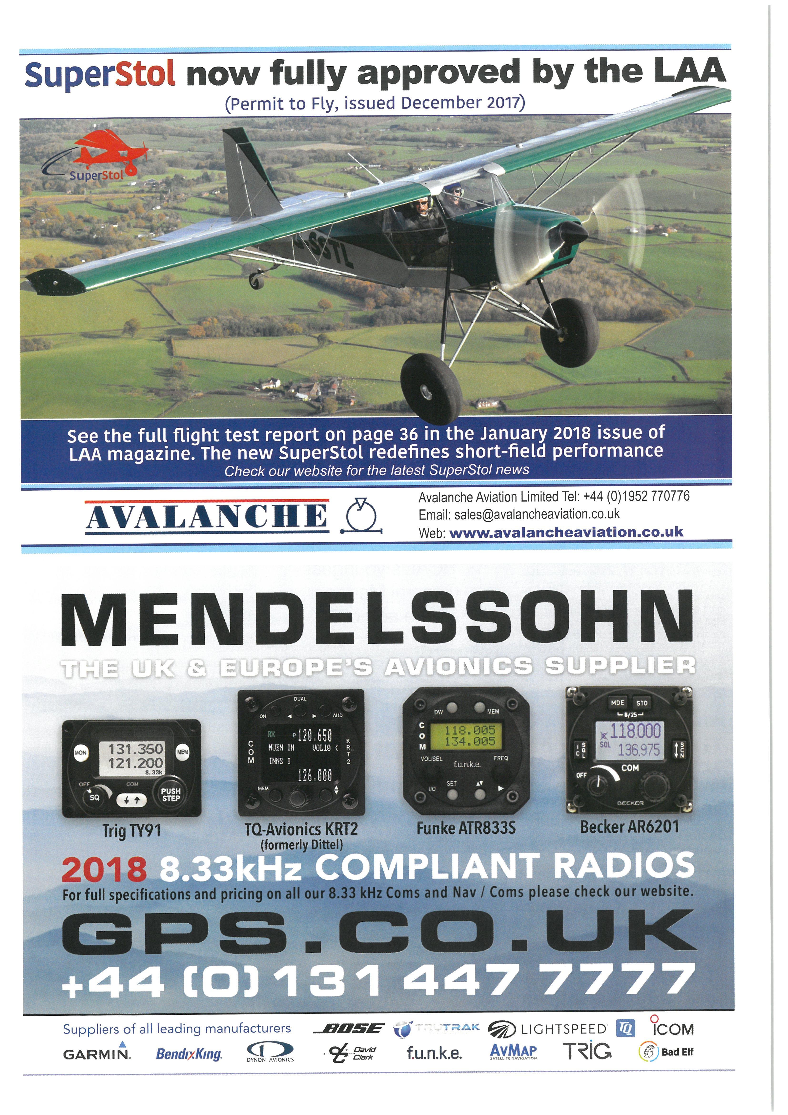 AIRCRAFT APPROVED? Members and readers should note that the inclusion of all advertisements in the commercial or classified sections of this magazine does not necessarily mean that the product or service is approved by the LAA. In particular, aircraft types, or examples of types advertised, may not, for a variety of reasons, be of a type or standard that is eligible for the issue of a LAA Permit to Fly. You should not assume that an aircraft type not currently on the LAA accepted type list will eventually be accepted.