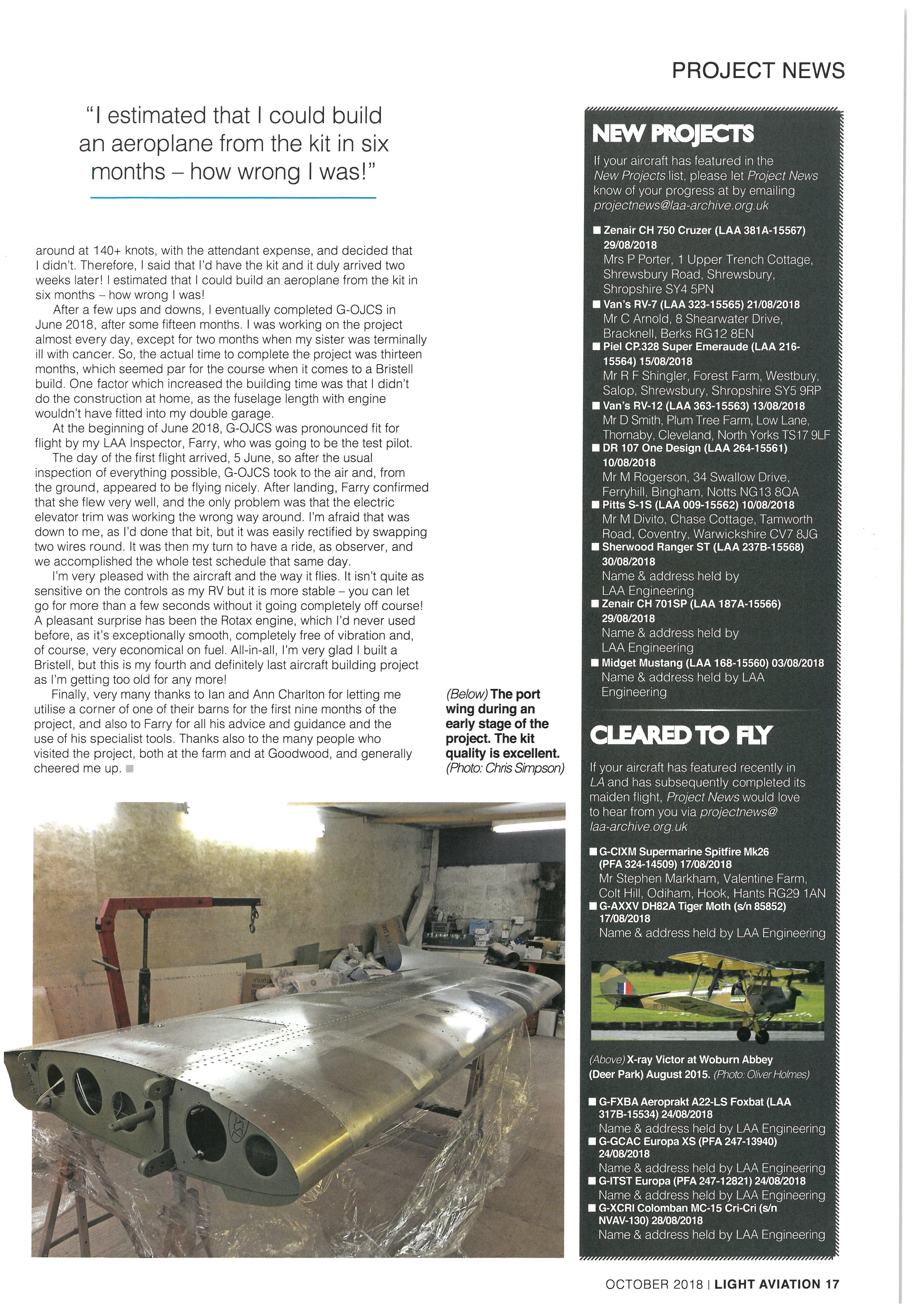 ScintexCP1310-C3,Supermarine SpitfireMk26,BristellNG5Speed Wing, New Projectsand ClearedtoFly