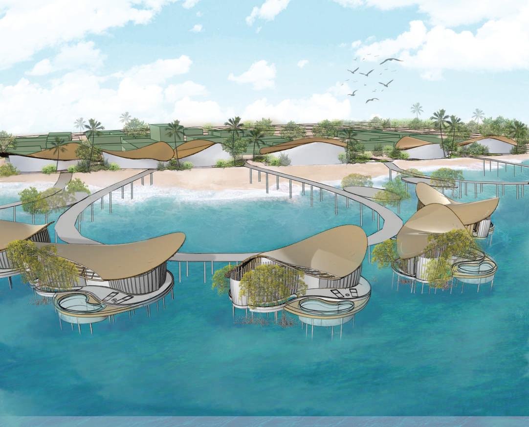 THE DESIGN OF THE TOURISM ZONE TAKES INTO ACCOUNT THE SURROUNDING ENVIRONMENT AND HARMONIOUSLY INTEGRATES WITH BOTH THE TOURISM CLUSTER AND THE OVERALL ISLAND PROFILE. THIS AIMS TO CATER TO THE NEEDS OF BOTH LOCAL RESIDENTS AND TOURISTS, CREATING A WELCOMING AND INCLUSIVE SPACE FOR ALL.