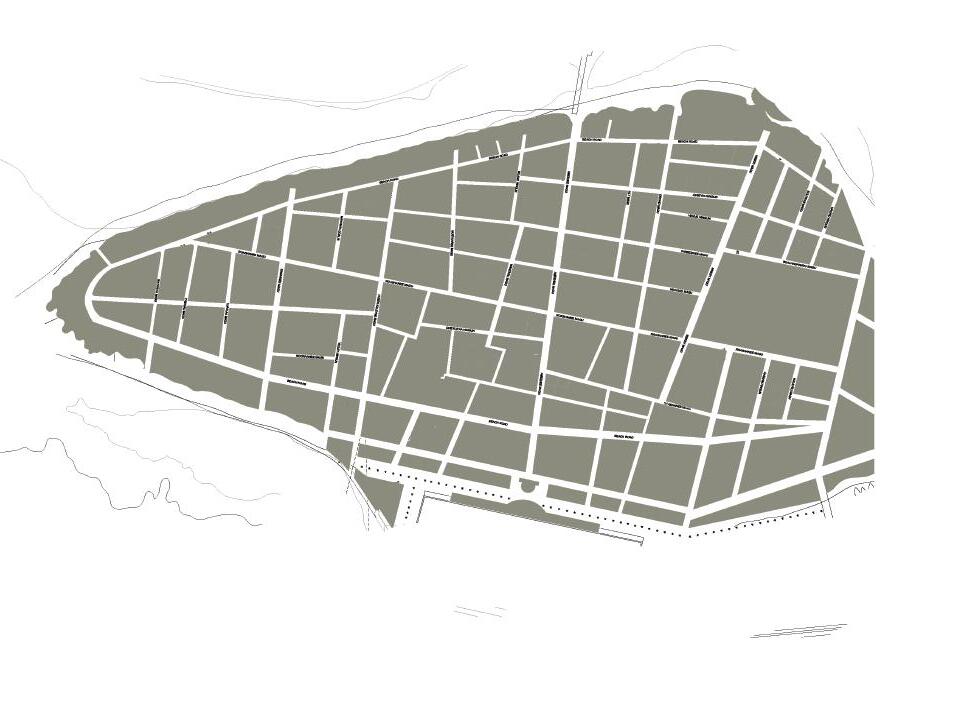 NETWORK OF STREETS CONNECTING DIFFERENT NEIGHBORHOODS IN THE AREA TO THE SURROUNDING AREA.