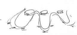 TOURISM ZONE ROADS EXTENDED: FOR VENTILATION, AND AIRFLOW IN TO ISLAND ORGANIC SHAPE WITH PATHWAYS LEADING ; ACTS AS A WHOLE