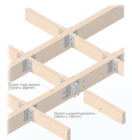 UNEVEN ROOF WITH EXPOSED STRUCTURE FACILITATING NATURAL VENTILATION AND LIGHT.