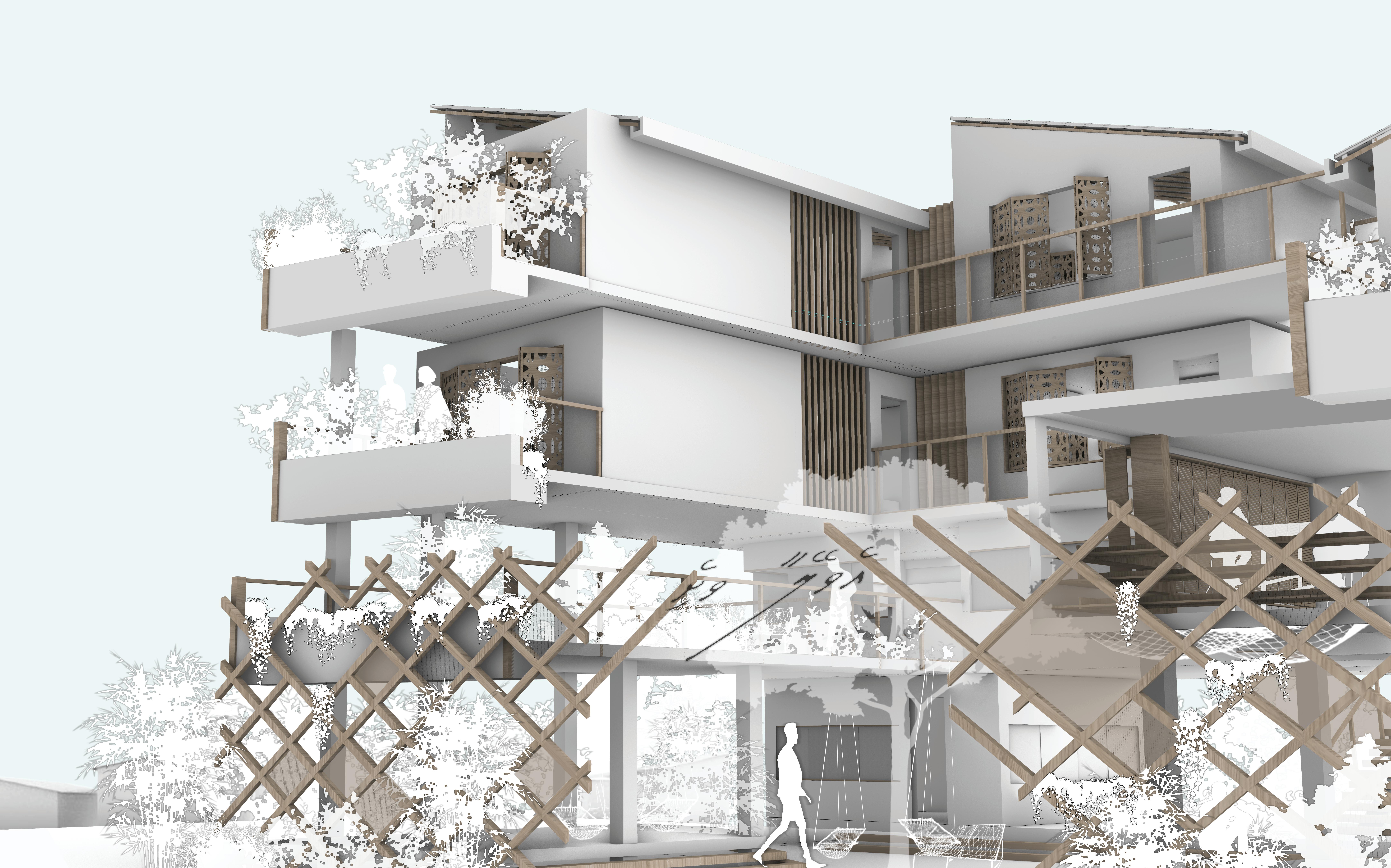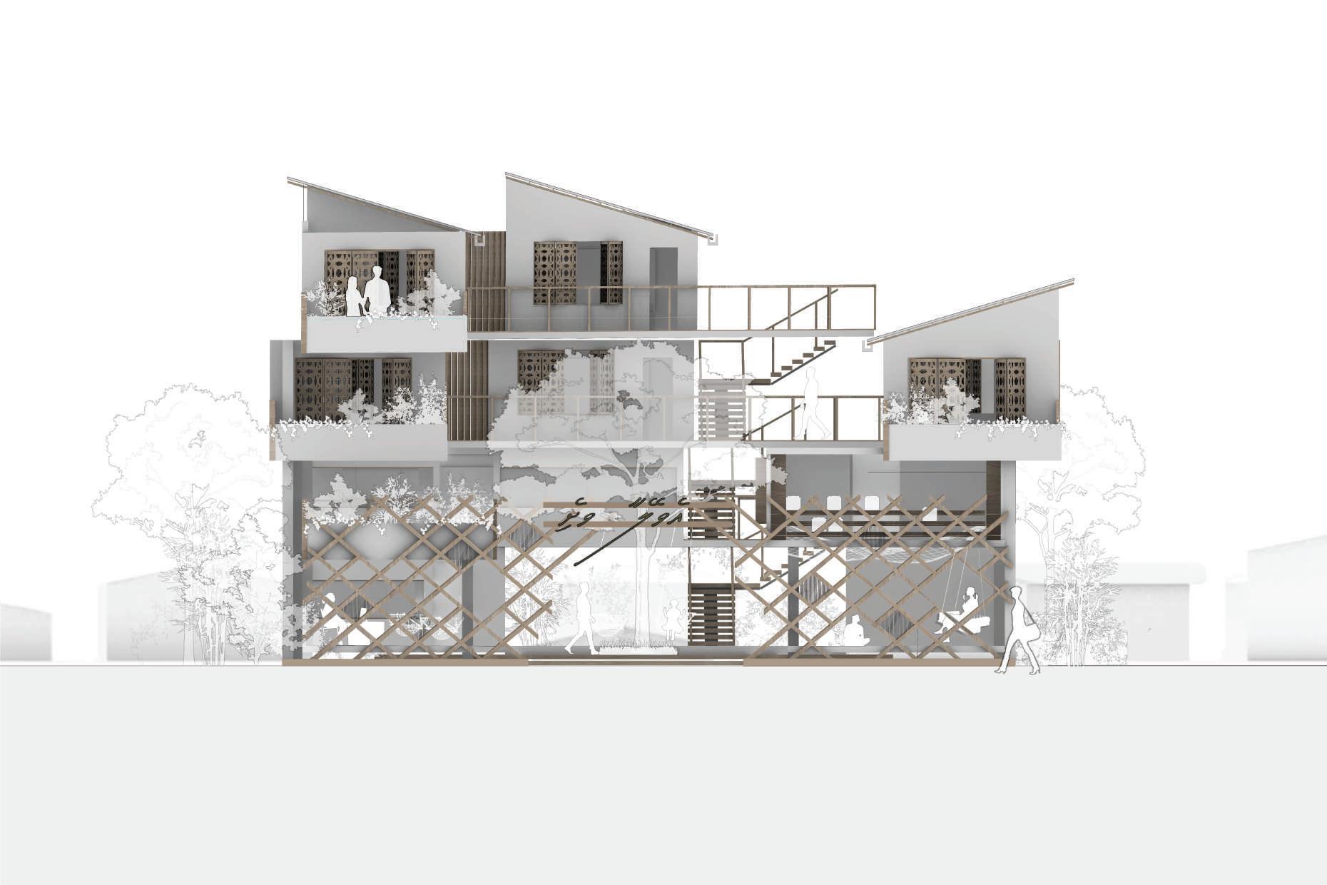 In order to diminish the visual bulk of the buildings, voids are intergrated, complemented by the seamless fusion of nature. Providing a clear solution to optimize natural light and ventilation.