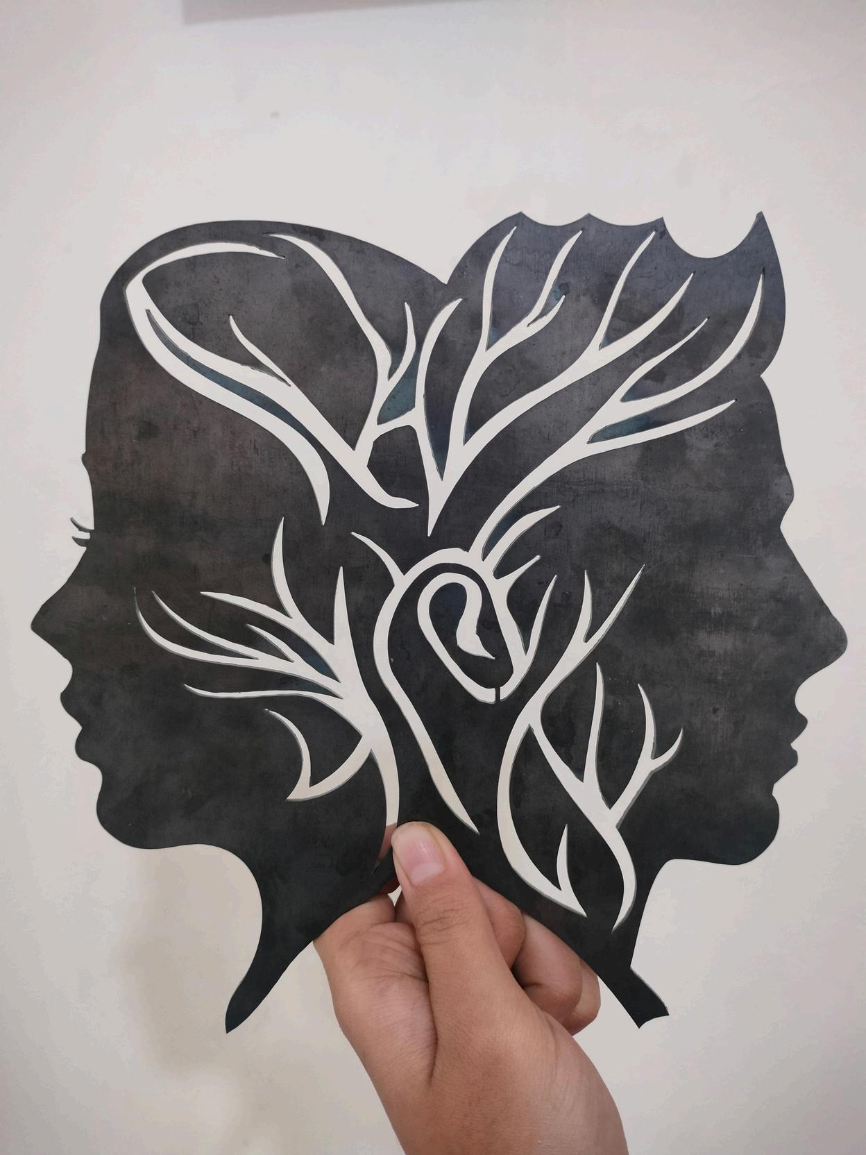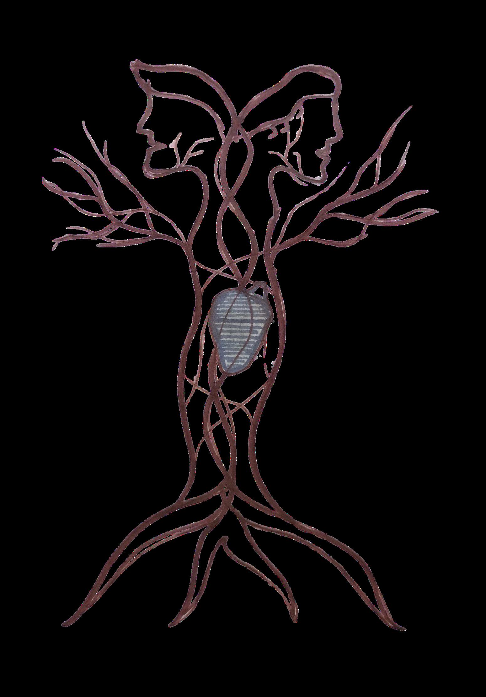 The two opposite and interconnected energies shows gender equality comes from the root and trunk of tree shows life on earth and the good health is achieved with the bonding of heart with steel.