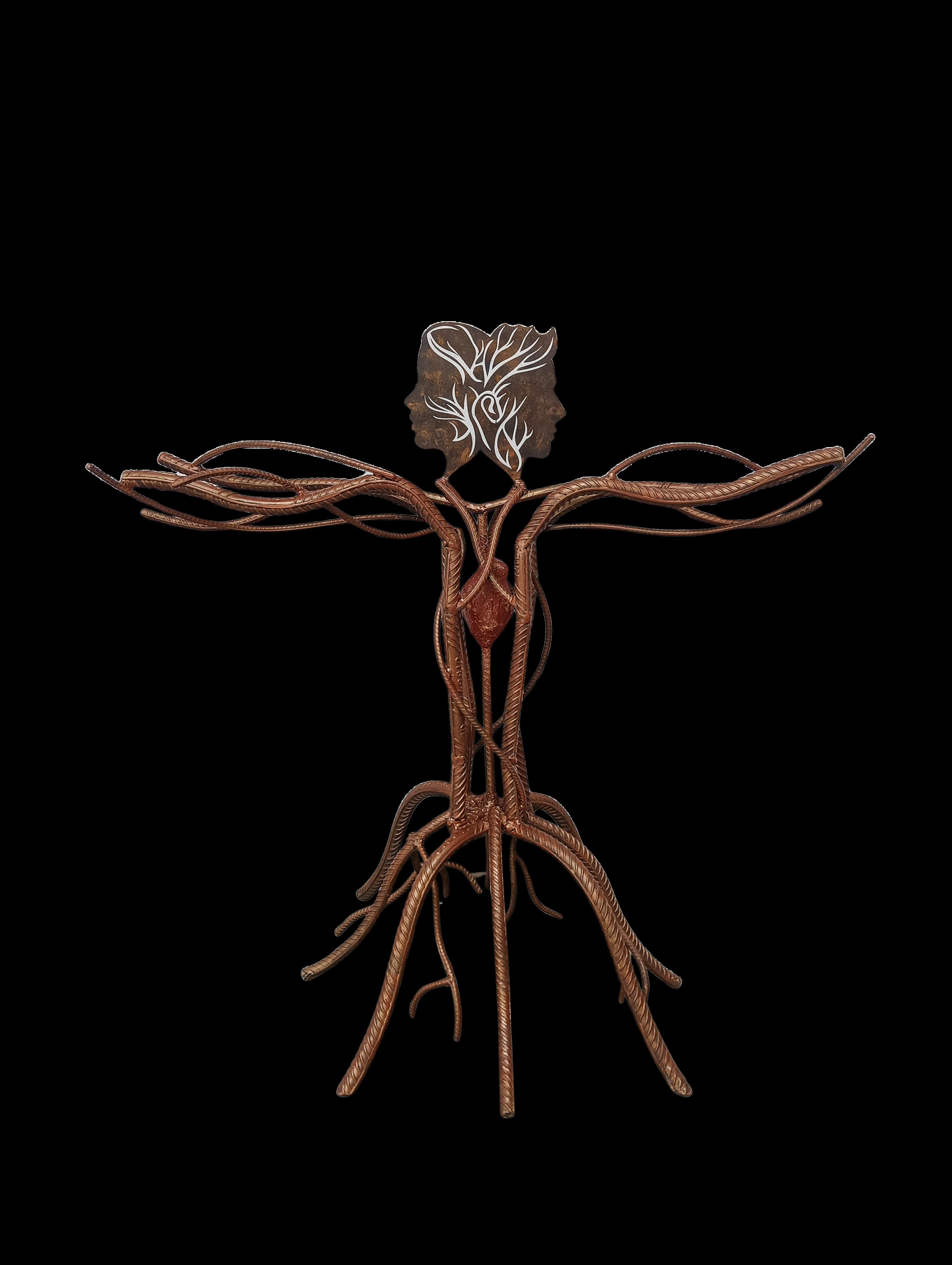 THE MODEL RESEMBLES TREE BRANCHES ENCLOSING THE HEART, THAT SYMBOLIZE LIFE ON LAND