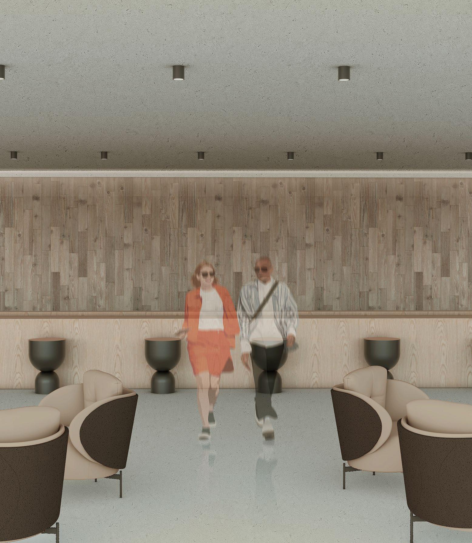 This tranquil bar lounge that is adjacent to the lobby invites you into an open and inviting space where warm earthy tones of concrete, wood, and contemporary furniture blend seamlessly to create a cozy and comfortable atmosphere.